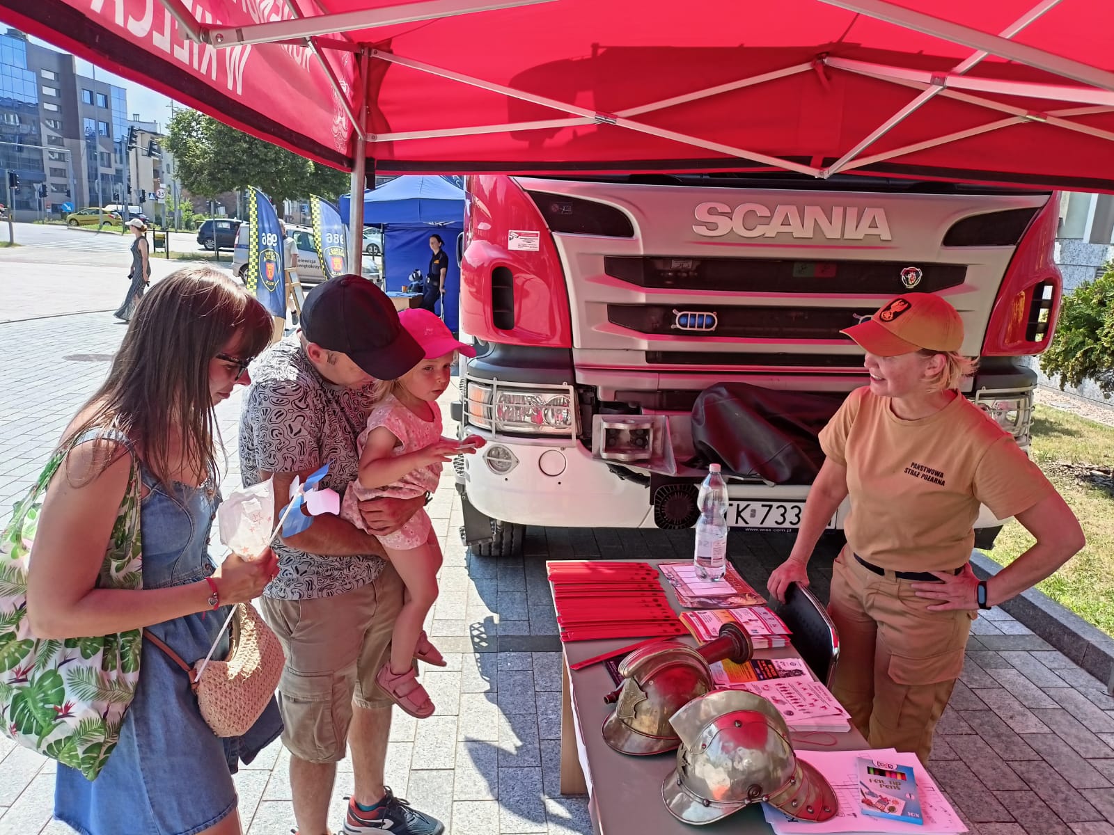Wysoka temperatura powietrza nie odstraszyła uczestników, którzy tłumnie przybyli i korzystali z atrakcji przygotowanych głównie dla najmłodszych. Państwowa Straż Pożarna również włączyła się w to rodzinne święto. Można było obejrzeć samochód gaśniczy i jego wyposażenie, wziąć udział w mini-konkursie o bezpieczeństwie, zrobić sobie zdjęcie siedząc na strażackim quadzie czy obejrzeć zabytkowe hełmy. Żadne dziecko nie odeszło od stoiska strażaków z pustymi rękami: rozdawane były odblaskowe opaski i plany lekcji, a dorosłym wręczano ulotki profilaktyczne dotyczące tlenku węgla czy wypalania traw.