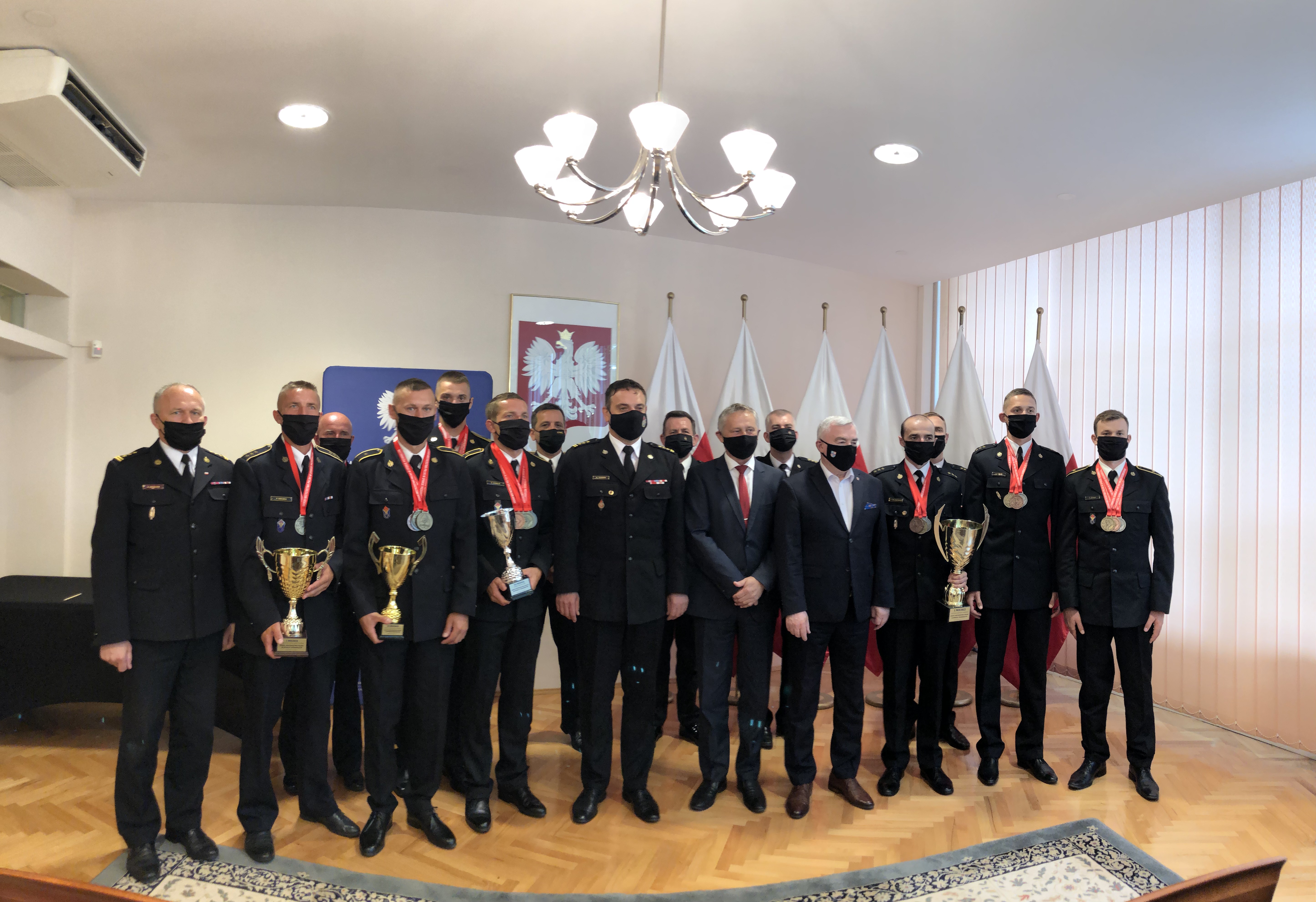 Gratulacje władz województwa świętokrzyskiego dla strażaków – złotych medalistów Mistrzostw Polski w Sporcie Pożarniczym