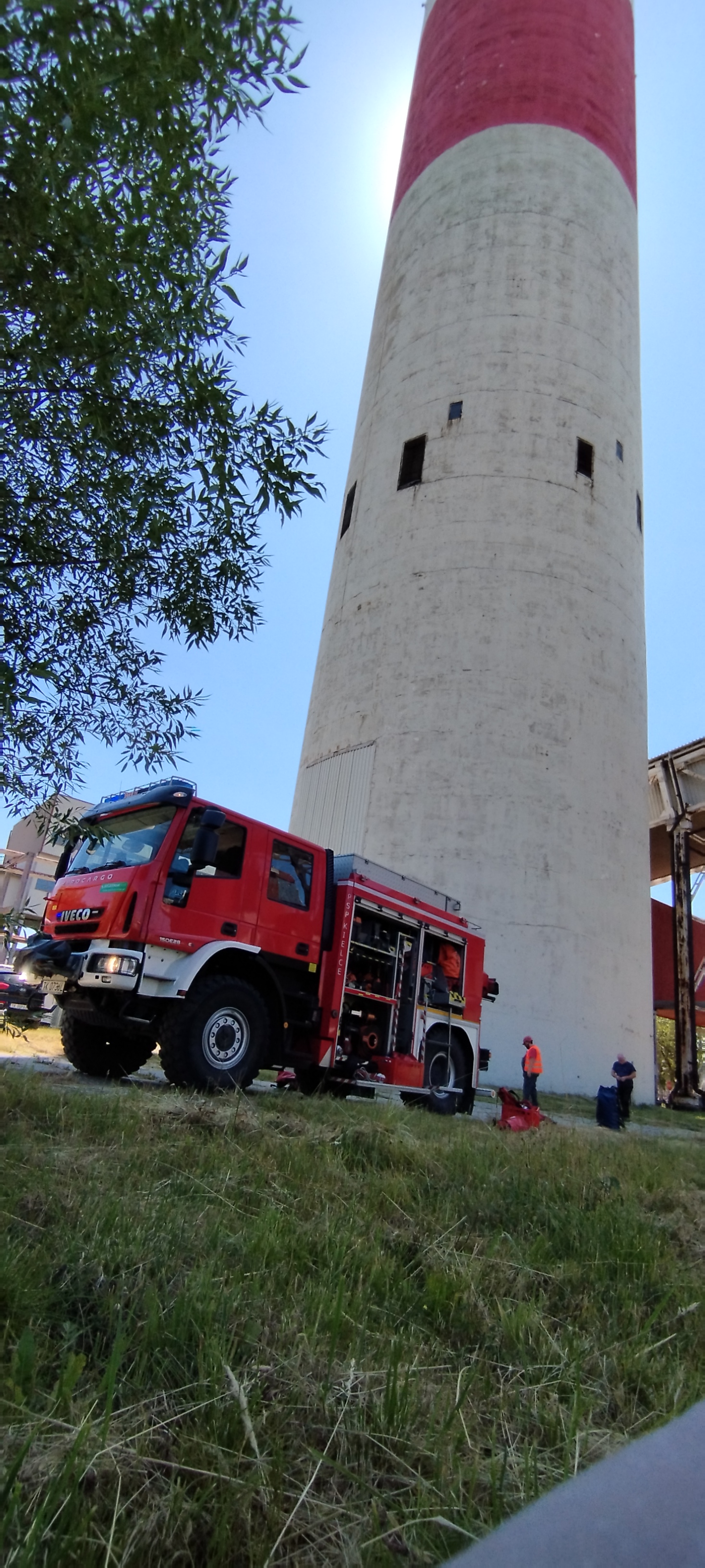 Wjeżdżając do Kielc drogą numer 74 oczom podróżnych ukazują się 2 wysokie kominy elektrociepłowni. Ten wyższy ma ponad 200 metrów wysokości i tu, 5 lipca 2025 około południa wezwani zostali strażacy.