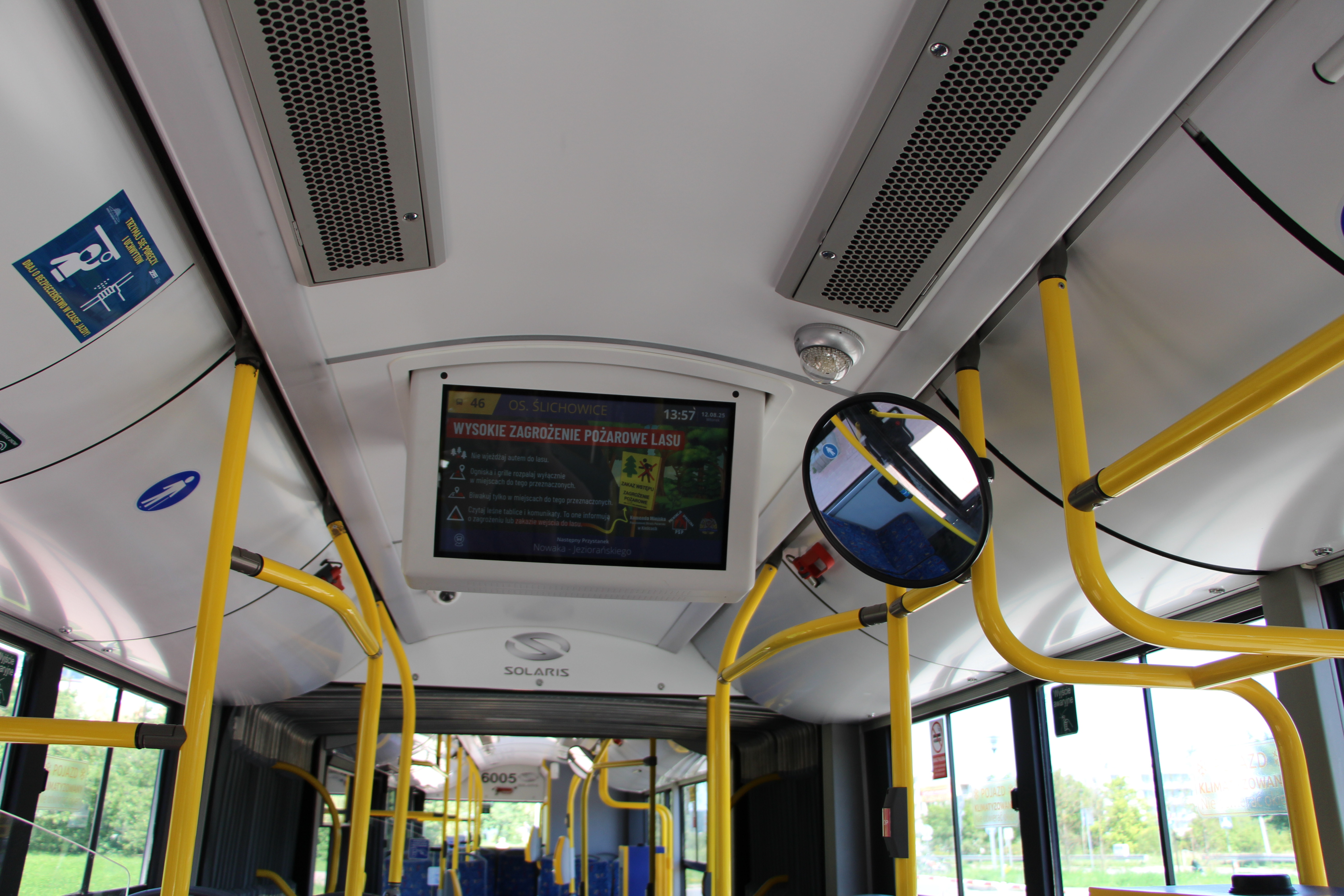 W ramach akcji, w autobusach komunikacji miejskiej emitowane są krótkie prezentacje graficzne (ikonografiki) dotyczące bezpiecznych zachowań – zarówno w codziennych sytuacjach, jak i w obliczu potencjalnych zagrożeń. Slajdy są prezentowane cyklicznie na ekranach wewnątrz pojazdów, umożliwiając pasażerom szybkie zapoznanie się z najważniejszymi zasadami postępowania. Tematyka materiałów będzie się zmieniać w zależności od pory roku oraz aktualnych zagrożeń występujących w regionie. Obecnie wyświetlane treści koncentrują się na: bezpiecznym wypoczynku letnim, zasadach bezpieczeństwa podczas prac rolnych i reakcjach na gwałtowne zjawiska pogodowe. W sezonie zimowym planowane są m.in. kampanie dotyczące: prawidłowego użytkowania czujek dymu i tlenku węgla czy bezpieczeństwa na zamarzniętych zbiornikach wodnych. Celem akcji jest podniesienie świadomości społecznej i promowanie odpowiedzialnych zachowań w różnych sytuacjach zagrożenia. Zachęcamy wszystkich pasażerów do śledzenia materiałów i dzielenia się wiedzą z bliskimi.