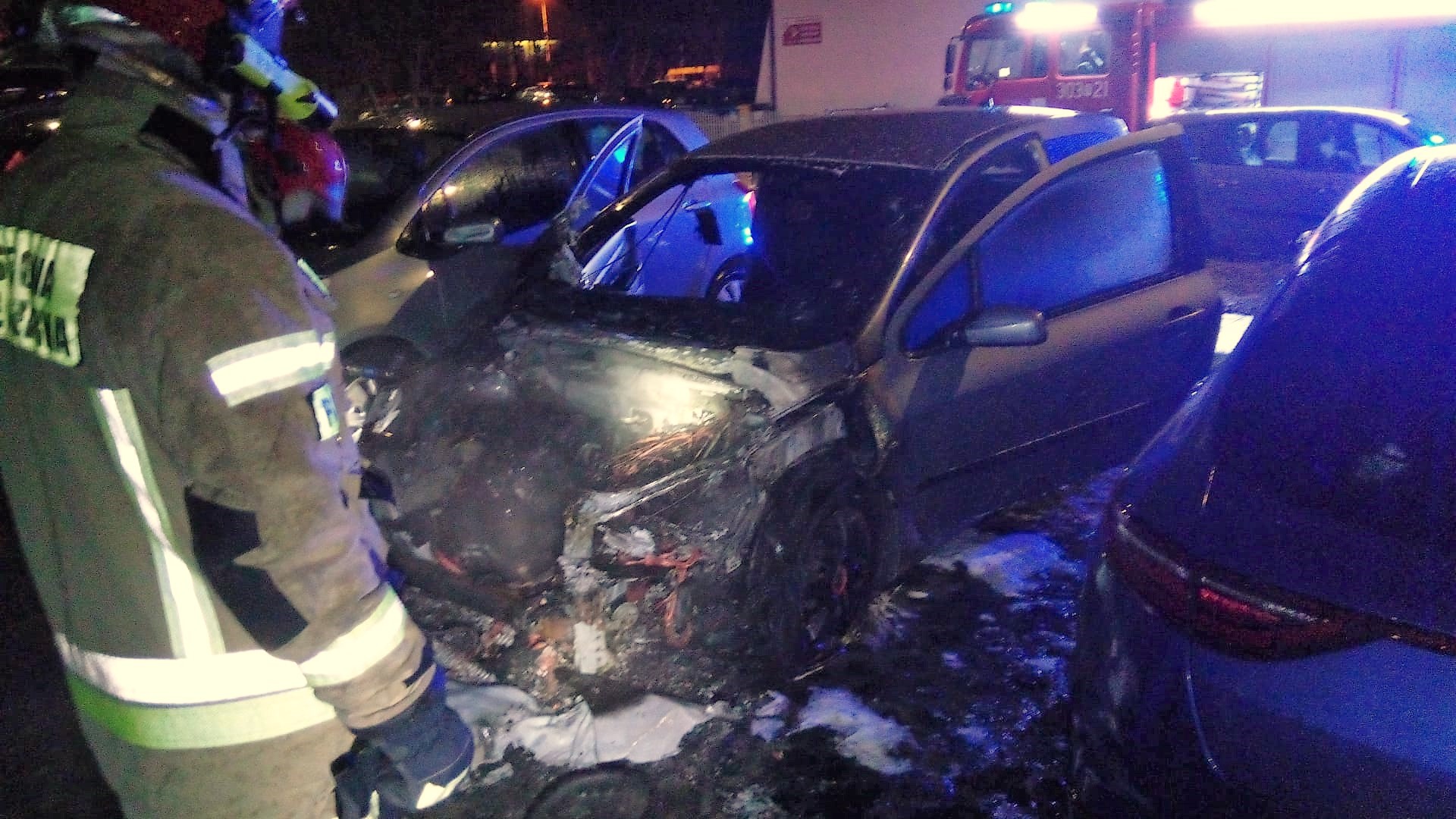 W samochodzie osobowym marki Peugeot stojącym na osiedlowym parkingu doszło do pożaru, a ogień objął komorę silnika oraz deskę rozdzielczą we wnętrzu pojazdu. Strażacy zabezpieczyli teren działań i podali jeden prąd gaśniczy piany ciężkiej na palące się auto. Temperatura pożaru sprawiła, że stojące po obu stronach pojazdy zostały w niewielkim stopniu uszkodzone. Dzięki szybkiej i sprawnej akcji gaśniczej pożar nie rozprzestrzenił się na sąsiadujace auta. Na zakończenie wszystkie trzy auta zostały sprawdzone kamerą termowizyjną, która nie wykazała zagrożenia.