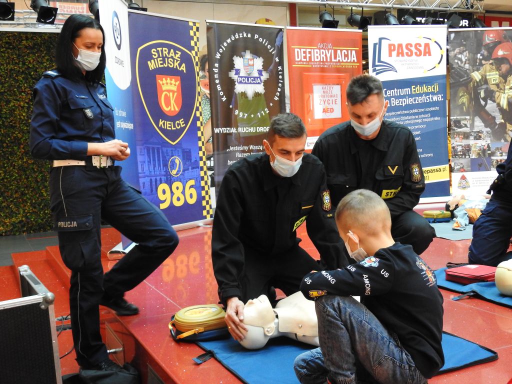 Warsztaty zorganizowane w kieleckiej galerii przyciągnęły dużą ilość osób zainteresowanych, którzy sprawdzali swoje umiejętności w zakresie udzielanie pierwszej pomocy, w szczególności w zakresie resuscytacji krążeniowo – oddechowej oraz zasady użycia defibrylatora AED.