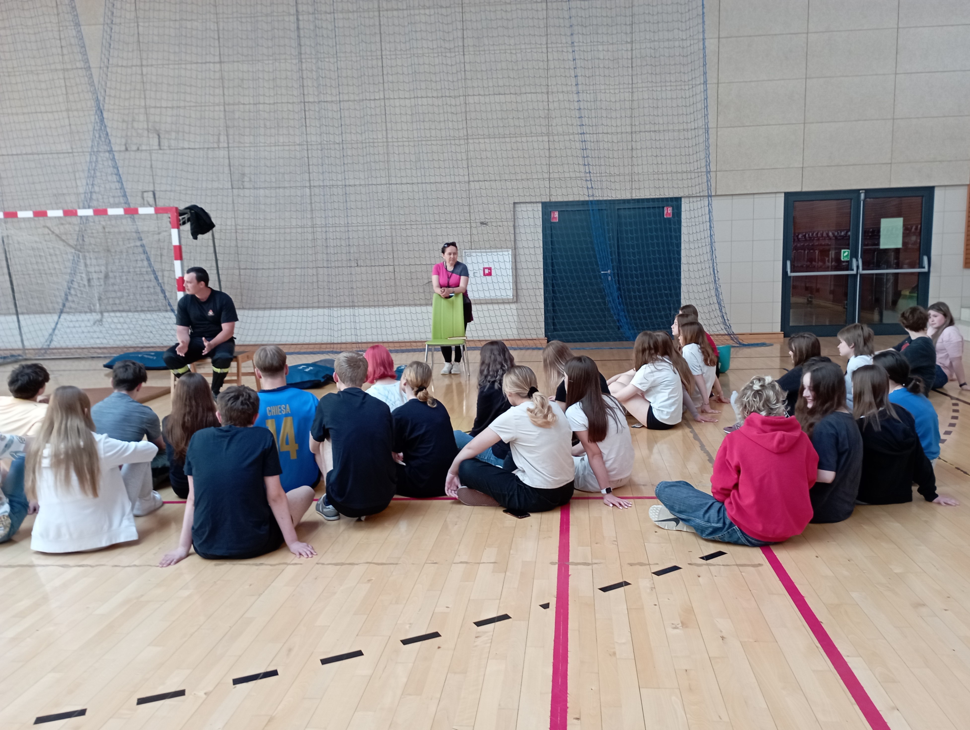 W zajęciach uczestniczyła młodzież szkolna z klas VIII szkoły podstawowej oraz klasy I i II z liceum. W przekazie swym ratownicy przybliżyli zasady bezpiecznego udzielania pomocy osobom poszkodowanym w zdarzeniach komunikacyjnych. Podkreślili żelazną zasadę takich działań czyli przede wszystkim bezpieczeństwo ratownika, pokazali jak zaangażować osoby postronne w swoje działania i wyjaśnili sposób zgłaszania zdarzenia do służb ratowniczych. W zajęciach brało udział około 60 uczniów z 4 klas, którzy mogli, wykorzystując fantoma spróbować własnych sił przy masażu serca oraz pod nadzorem ratownika ewakuować poszkodowanego nieprzytomnego z auta.