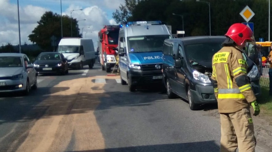 Na ulicy Łódzkiej w Kielcach doszło do zderzenia dwóch aut: Audi Q5 i Citroen Jumpy. Pojazdami podróżowały łącznie 3 osoby i żadna z nich nie wymagała pomocy medycznej. Strażacy zabezpieczyli i oznakowali teren działań oraz odłączyli zasilanie z akumulatora w jednym z aut oraz usunęli plamę płynów eksploatacyjnych z jezdni. W ten sposób przywrócony został płynny ruch na jednej z głównych arterii miasta.