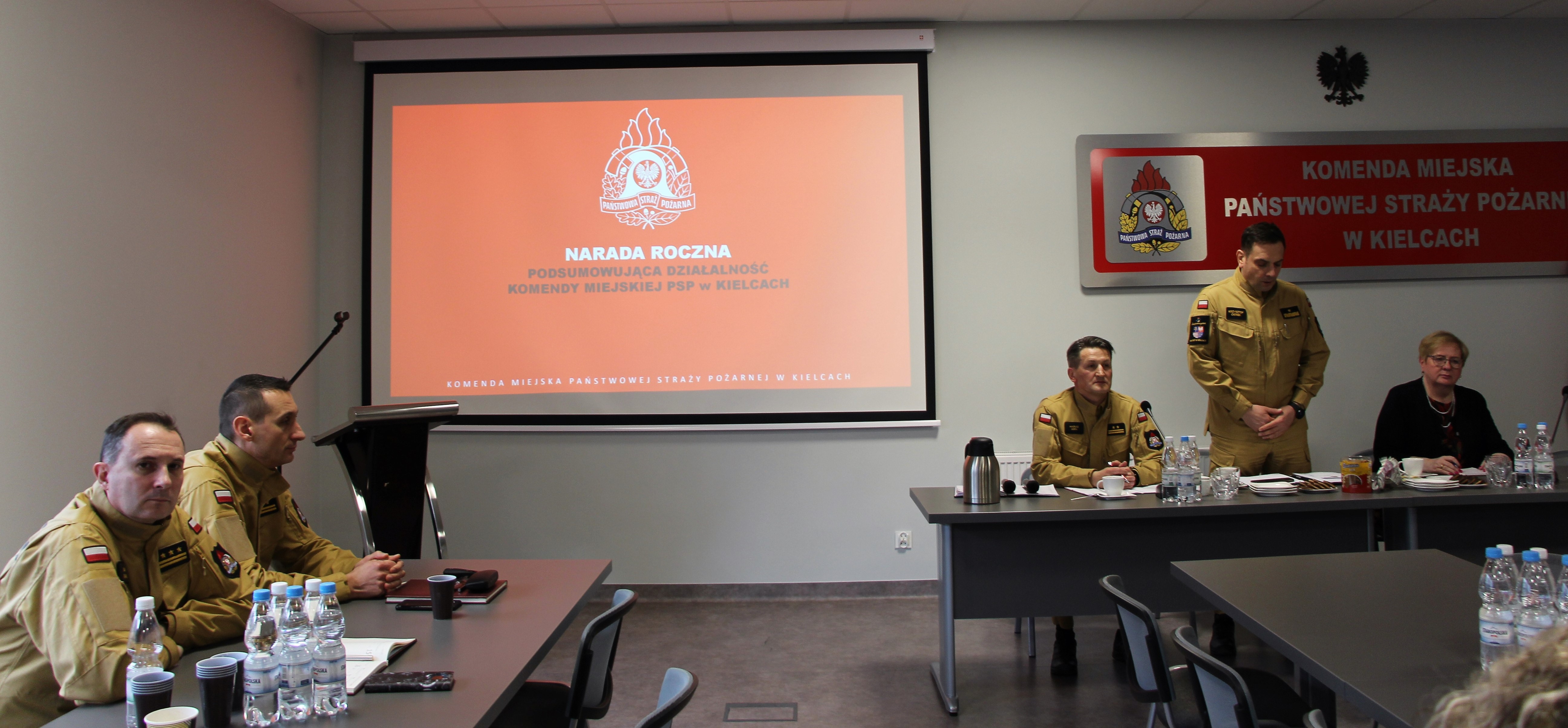 14 lutego 2023 roku o godzinie 11:00 w sali konferencyjnej rozpoczęła się narada roczna podsumowująca działalność Komendy Miejskiej Państwowej Straży Pożarnej w Kielcach za rok 2022.
