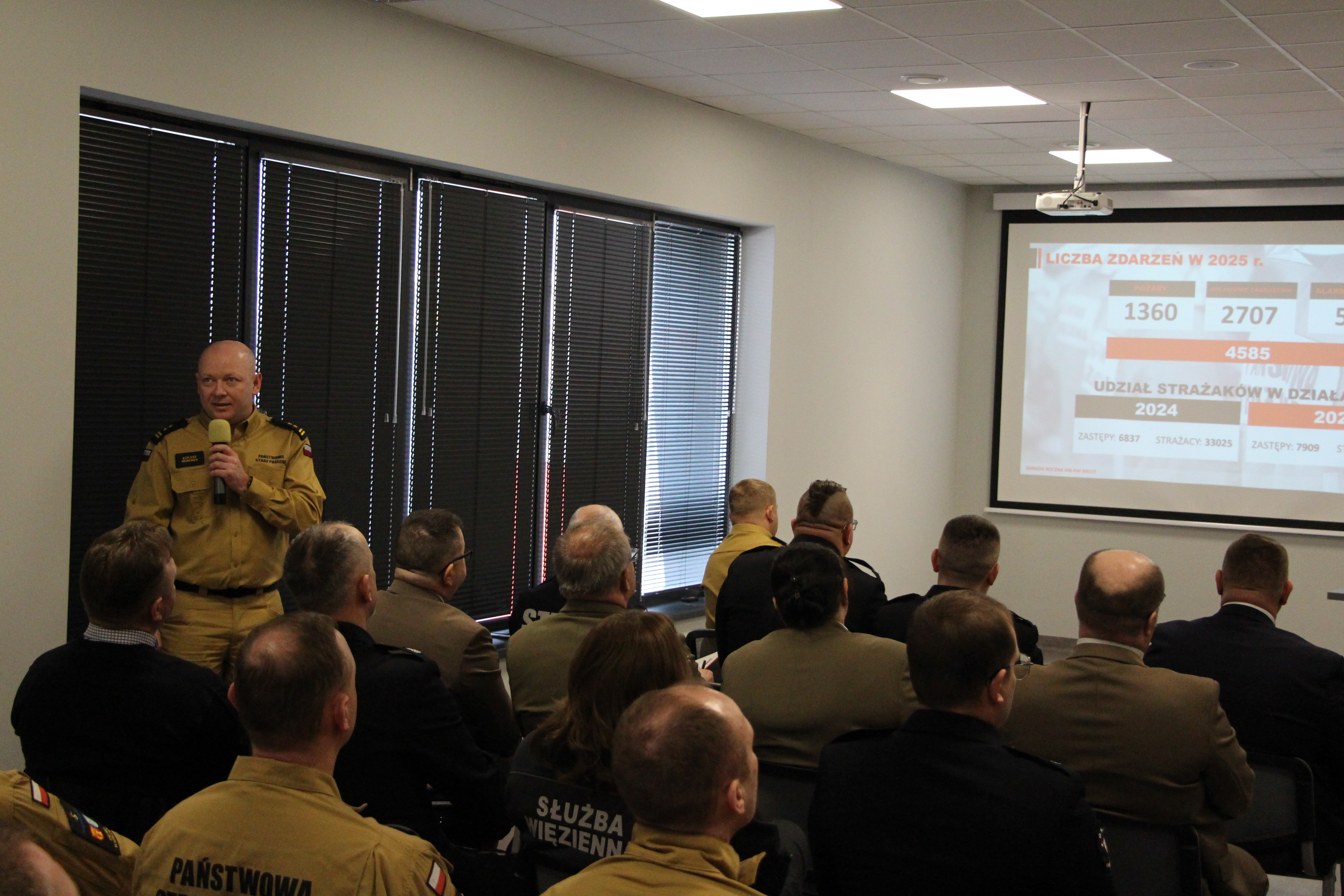 Z przedstawionych podczas narady danych wynika, że w 2025 roku odnotowano łącznie 4585 zdarzeń, o ponad sto więcej niż rok wcześniej, w tym 1360 pożarów, 2707 miejscowych zagrożeń oraz 518 alarmów fałszywych. Do działań skierowano 7909 zastępów angażujących 39 224 strażaków. Wśród przyczyn pożarów dominowały podpalenia (883 przypadki), a miejscowe zagrożenia najczęściej wynikały z naruszeń zasad bezpieczeństwa ruchu drogowego oraz skutków silnych wiatrów i burz. W wyniku zdarzeń życie straciło 119 osób, a 533 osoby odniosły obrażenia.
