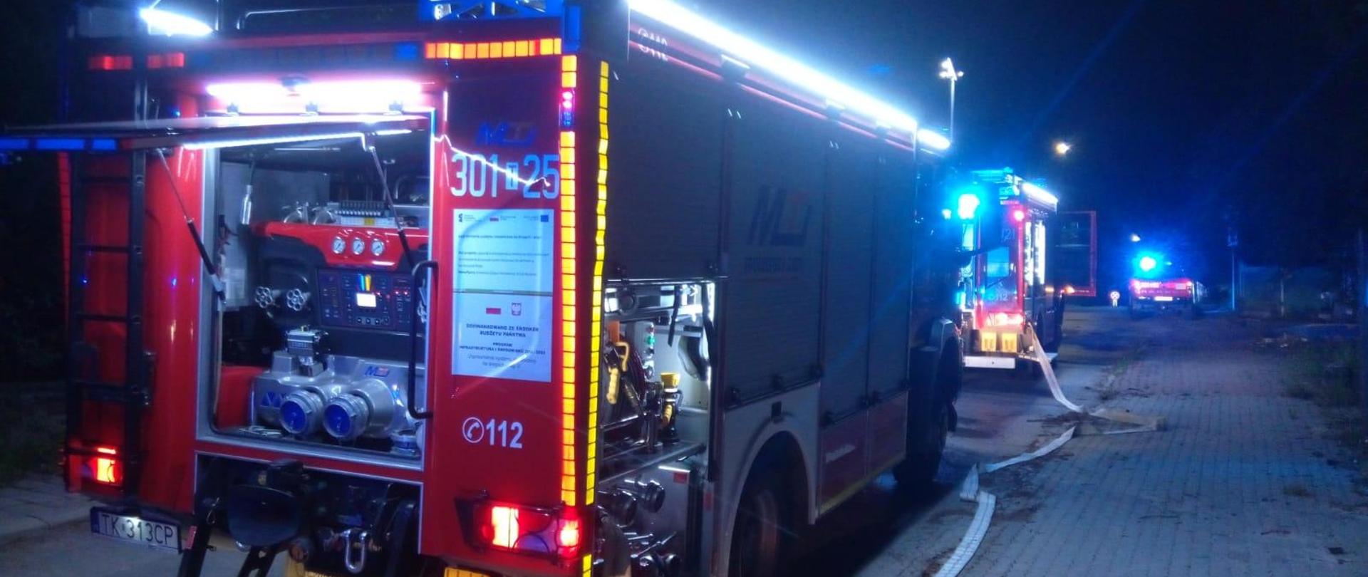 Poinformowane Stanowisko Kierowania Komendanta Miejskiego Państwowej Straży Pożarnej w Kielcach zadysponowało 5 zastępów Państwowej Straży Pożarnej. Ratownicy zobaczyli pożar, który ogarnął pomieszczenia na parterze i pierwszego piętra pustostanu. Natychmiast przystąpili to działań: zabezpieczyli teren i rozpoczęli gaszenie ognia. Równocześnie prowadzili przeszukanie wszystkich pomieszczeń w celu wykluczenia osób poszkodowanych. Wewnątrz nikogo nie znaleziono. Wentylatorem oddymiającym wypchnęli dymy pożarowe z budynku, a na zakończenie skontrolowali kamerą termowizyjną pogorzelisko dogaszając na bieżąco lokalizowane zarzewia ognia.