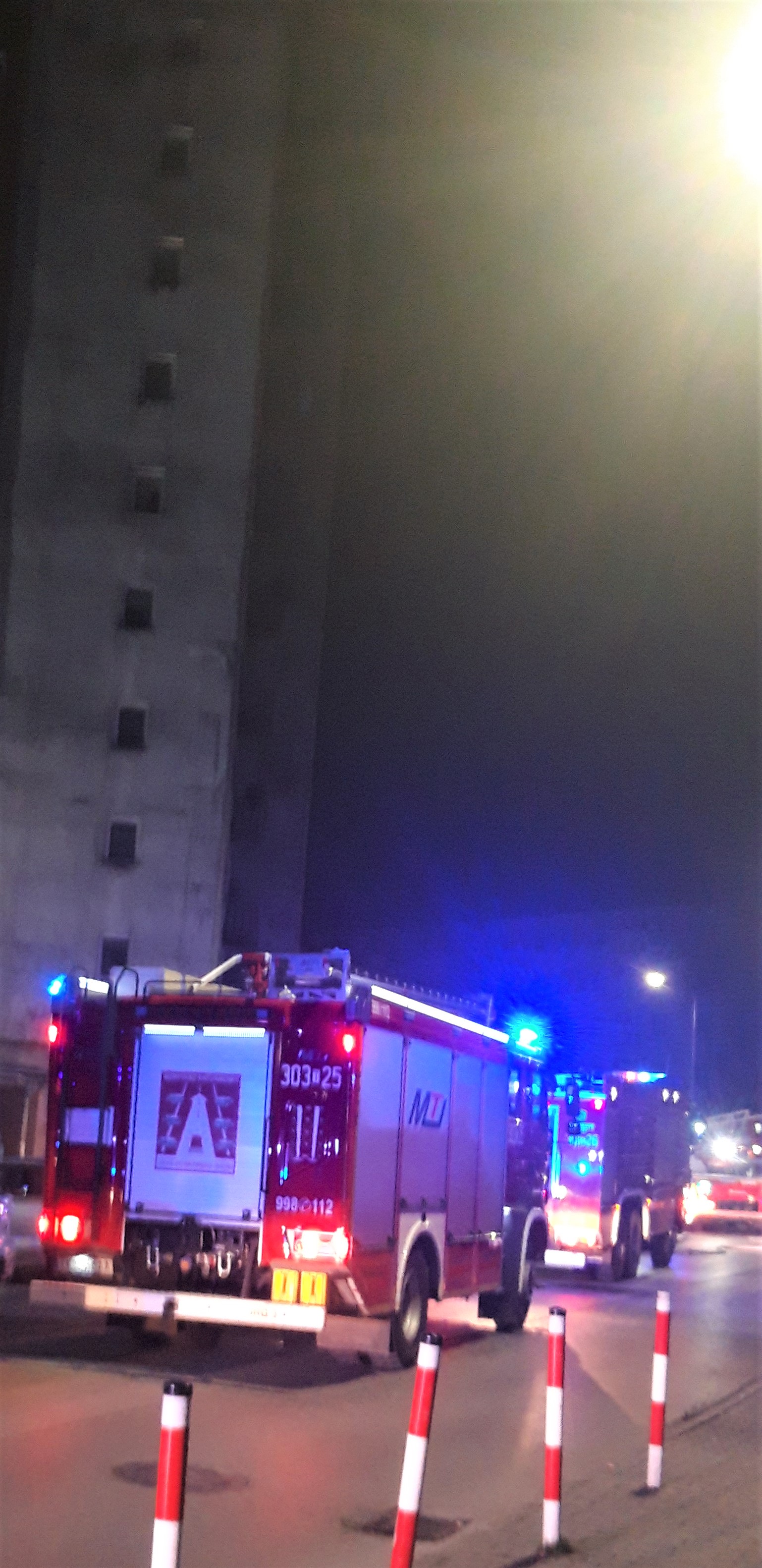 W budynku paliły się drzwi do komórki lokatorskiej miedzy kondygnacją 8 a 9 oraz drzwi wejściowe do dwóch mieszkań na 9 piętrze. Strażacy zabezpieczyli miejsce zdarzenia ewakuując jednocześnie dwie zagrożone osoby z balkonu i okna mieszkania na 9 piętrze przy użyciu drabiny mechanicznej. Przystąpiono do gaszenia palących się drzwi i ewakuacji pozostałych mieszkańców z lokali na 9 i 10 piętrze. Łącznie 10 mieszkańców bloku zostało wyprowadzonych na zewnątrz, gdzie Zespół Ratownictwa Medycznego przebadał 5 osób z czego 3 osoby zabrał do szpitala. Oddymiono i przewietrzono klatkę schodową. Po ugaszeniu pożaru mieszkania zostały sprawdzone przy użyciu kamery termowizyjnej i detektora. Urządzenia nie wykazały żadnych zagrożeń.