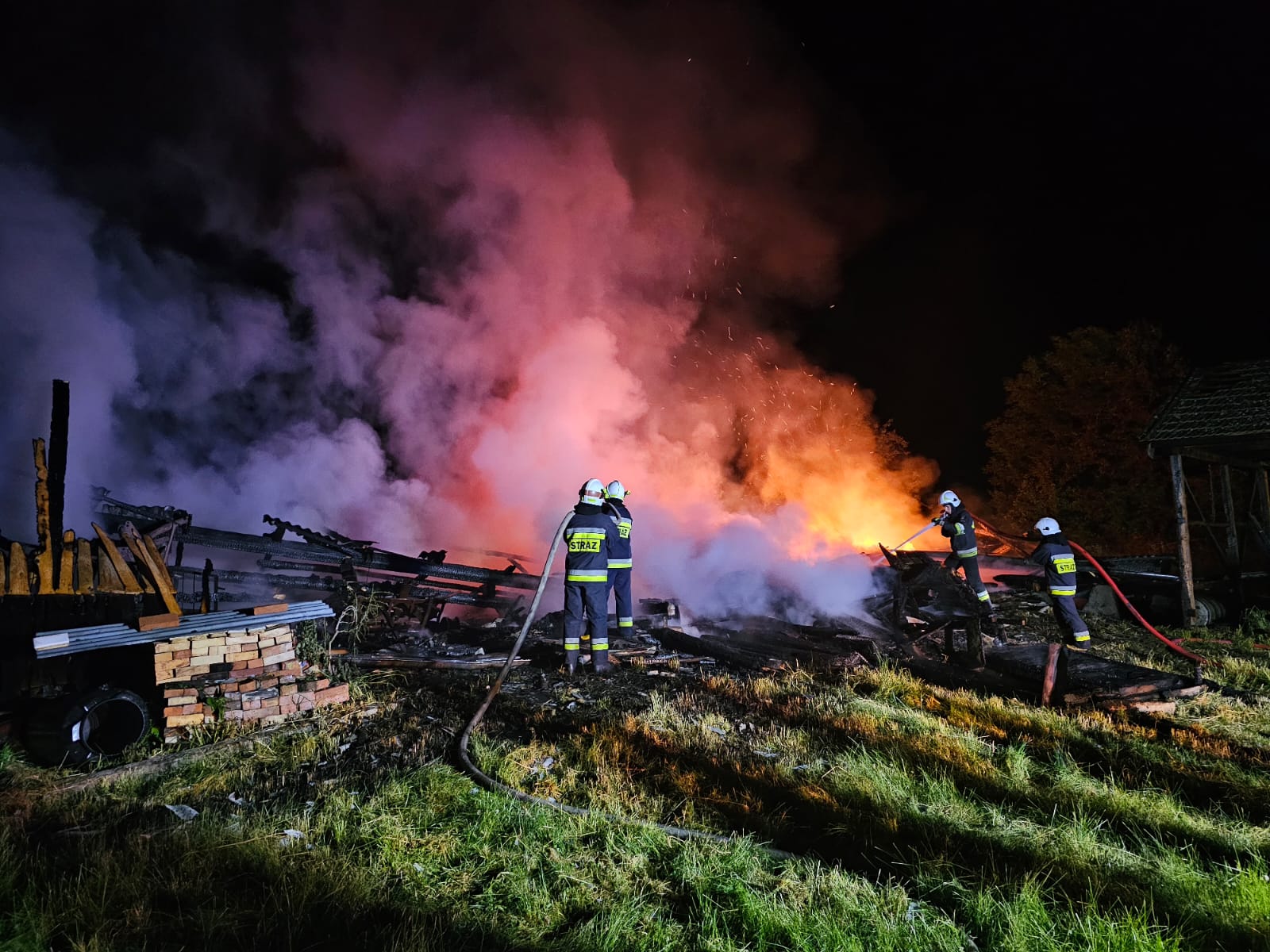 Strażacy, którzy przybyli na miejsce zobaczyli stodołę o wymiarach około 15 m na 10 m całą w płomieniach, która w wyniku pożaru uległa zawaleniu. Nikt w tym czasie nie przebywał w budynku i nikt nie wymagał pomocy medycznej. Ratownicy zabezpieczyli teren i rozpoczęli gaszenie ognia podając jeden strumień wody na ognisko pożaru, a drugi broniąc sąsiedniego budynku. Po przygaszeniu strażacy przerzucili pogorzelisko dogaszając zarzewia ognia a na zakończenie sprawdzili je kamerą termowizyjną wykluczając zagrożenia. Ta akcja trwała ponad 3 godziny i realizowana była siłami 4 zastępów straży pożarnej w sile 24 ratowników.