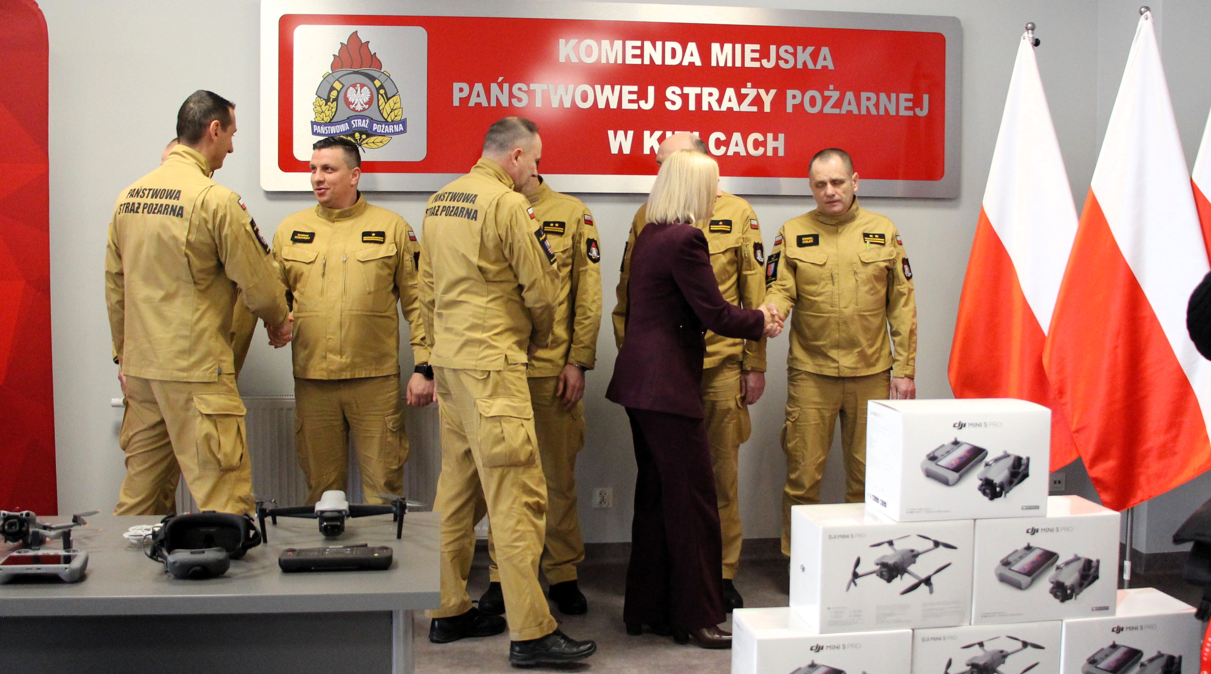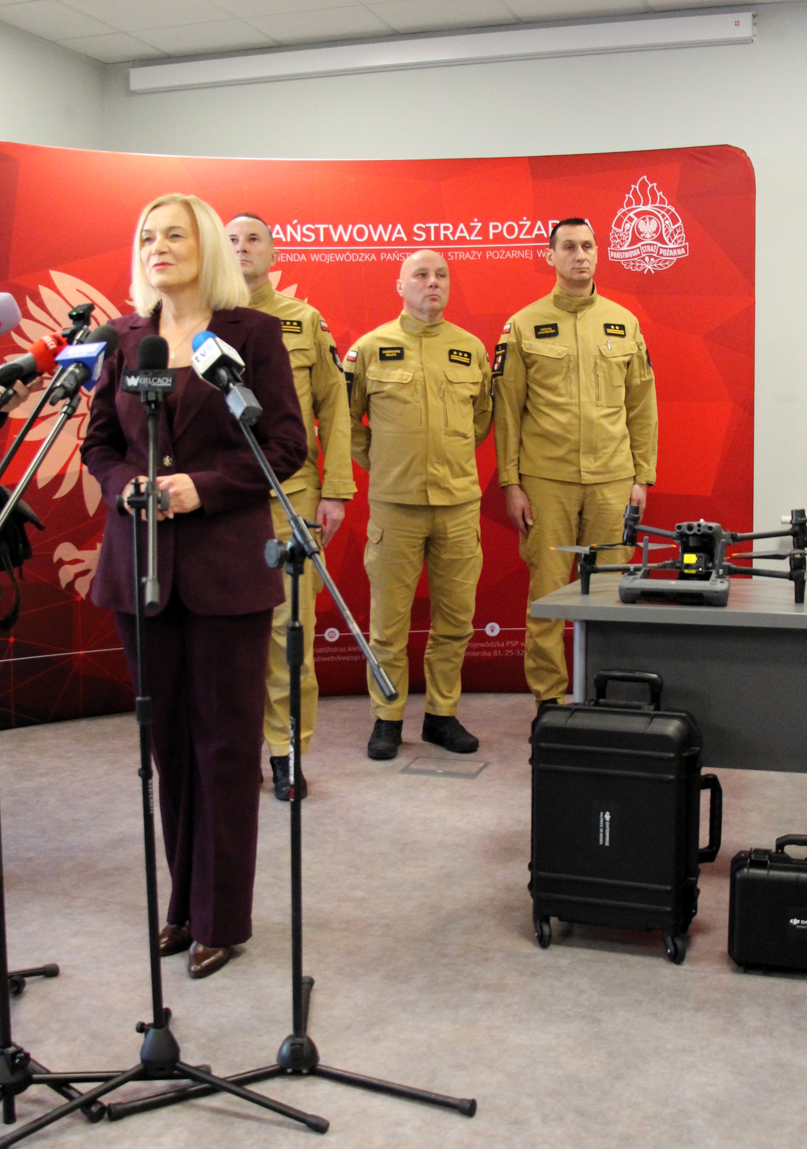 Doskonale rozumieją to władze samorządowe czego dowodem jest podpisanie14 października 2025 roku w siedzibie Urzędu Marszałkowskiego województwa świętokrzyskiego umów na dofinansowanie kwotą 210 000 zł zakupu nowych bezzałogowych statków powietrznych dla strażaków. Pokłosiem tego była dzisiejsza uroczystość, w której uczestniczyła Marszałek województwa świętokrzyskiego Pani Renata Janik i Świętokrzyski Komendant Wojewódzki PSP st. bryg. Marcin Charuba. Wymiernym efektem umowy było 6 dronów dla kieleckich strażaków i kilkudziesięciu przeszkolonych operatorów urządzeń z tutejszej komendy. Jak uniwersalne potrafią być bezzałogowe statki powietrzne pokazują działania podczas pożaru lasu w Snochowicach czy w pustostanach po byłym szpitalu MSWiA w Kielcach. Tak nowoczesne wyposażenie diametralnie poprawia możliwości operacyjne kieleckiej straży. Wykorzystując maszyny możemy sprawniej i bezpieczniej monitorować wały w sytuacji powodzi, precyzyjniej określać sytuację pożarową podczas pożarów obiektów wielkopowierzchniowych nie narażając strażaków, odnajdywać źródła pożaru i obserwować jego rozwój szczególne w pożarach na dużych powierzchniach, a także skuteczniej prowadzić działania poszukiwawczo-ratownicze.