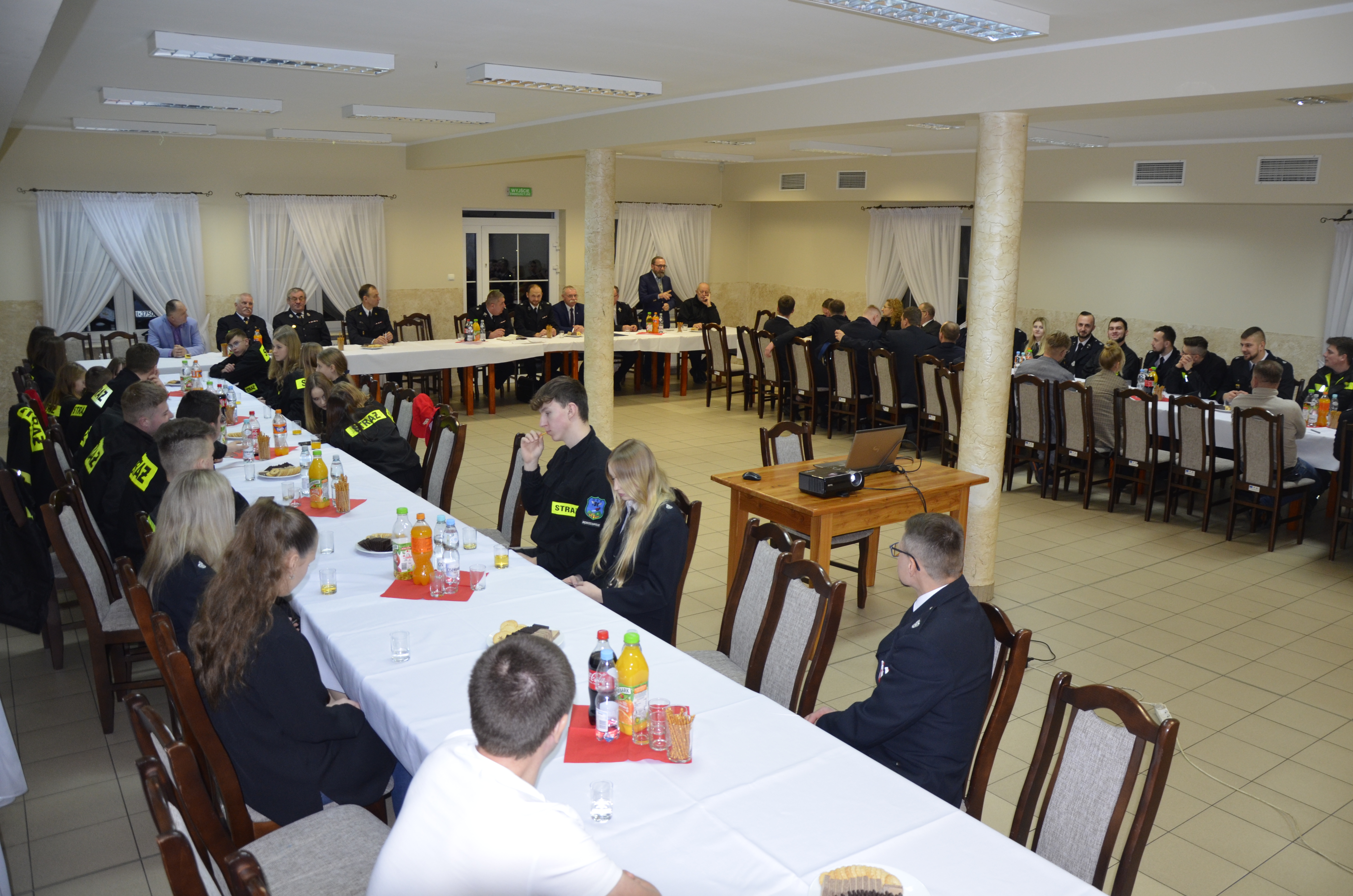 Wśród zaproszonych gości ze strażakami spotkali się Zastępca Świętokrzyskiego Komendanta Wojewódzkiego Państwowej Straży Pożarnej st. bryg. Artur Brachowicz oraz Zastępca Komendanta Miejskiego PSP w Kielcach bryg. Michał Jankowski. Spotkanie rozpoczęła prezentacja namiotu pneumatycznego pozyskanego przez jednostkę w zeszłym roku. Goście złożyli noworoczne życzenia zebranym oraz wyrazili wdzięczność ratownikom za zaangażowanie w rozwój swojej jednostki jak również w życie lokalnej społeczności. Druhowie omówili realizację zadań za 2022 rok oraz zaprezentowali swoje plany na rozwój jednostki w kolejnym roku. Była to również okazja do pochwalenia się imponującymi statystykami interwencji prowadzonych w 2022 roku, pozyskanym sprzętem oraz ambitnymi planami na 2023 rok.