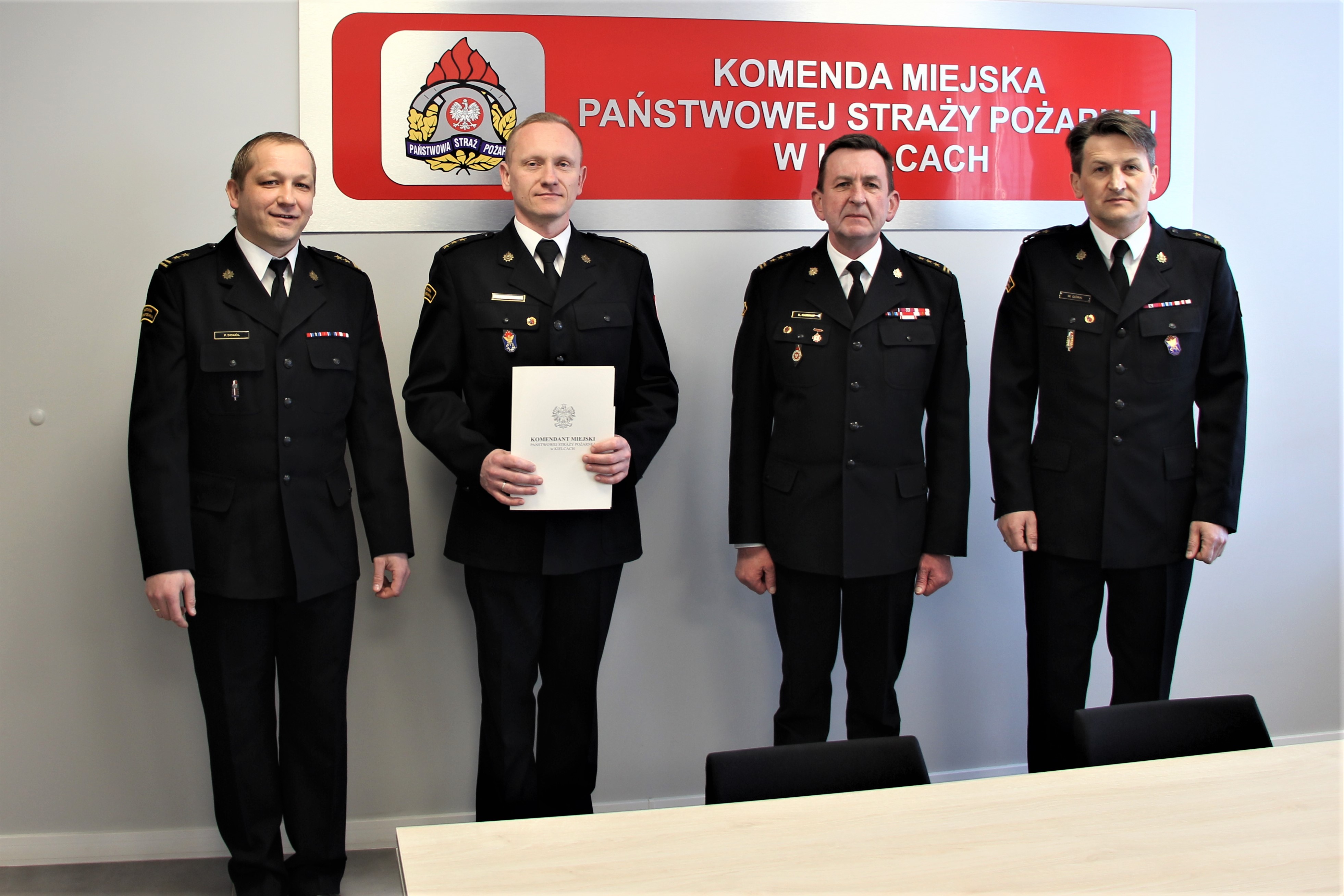 Komendant miejski Państwowej Straży Pożarnej w Kielcach st. bryg. Sławomir Karwat, z dniem 15 marca 2022 roku, powierzył pełnienie obowiązków na stanowisku zastępcy naczelnika Wydziału Operacyjno-Szkoleniowego kpt. Marcinowi Pastuszce. W spotkaniu, które odbyło się w komendzie miejskiej PSP udział wzięli: komendant miejski Państwowej Straży Pożarnej w Kielcach st. bryg. Sławomir Karwat, zastępca komendanta miejskiego PSP bryg. Mariusz Góra, naczelnik Wydziału Operacyjno-Szkoleniowego bryg. Piotr Sokól oraz świeżo upieczony zastępca naczelnika Wydziału Operacyjno-Szkoleniowego kpt. Marcin Pastuszka.