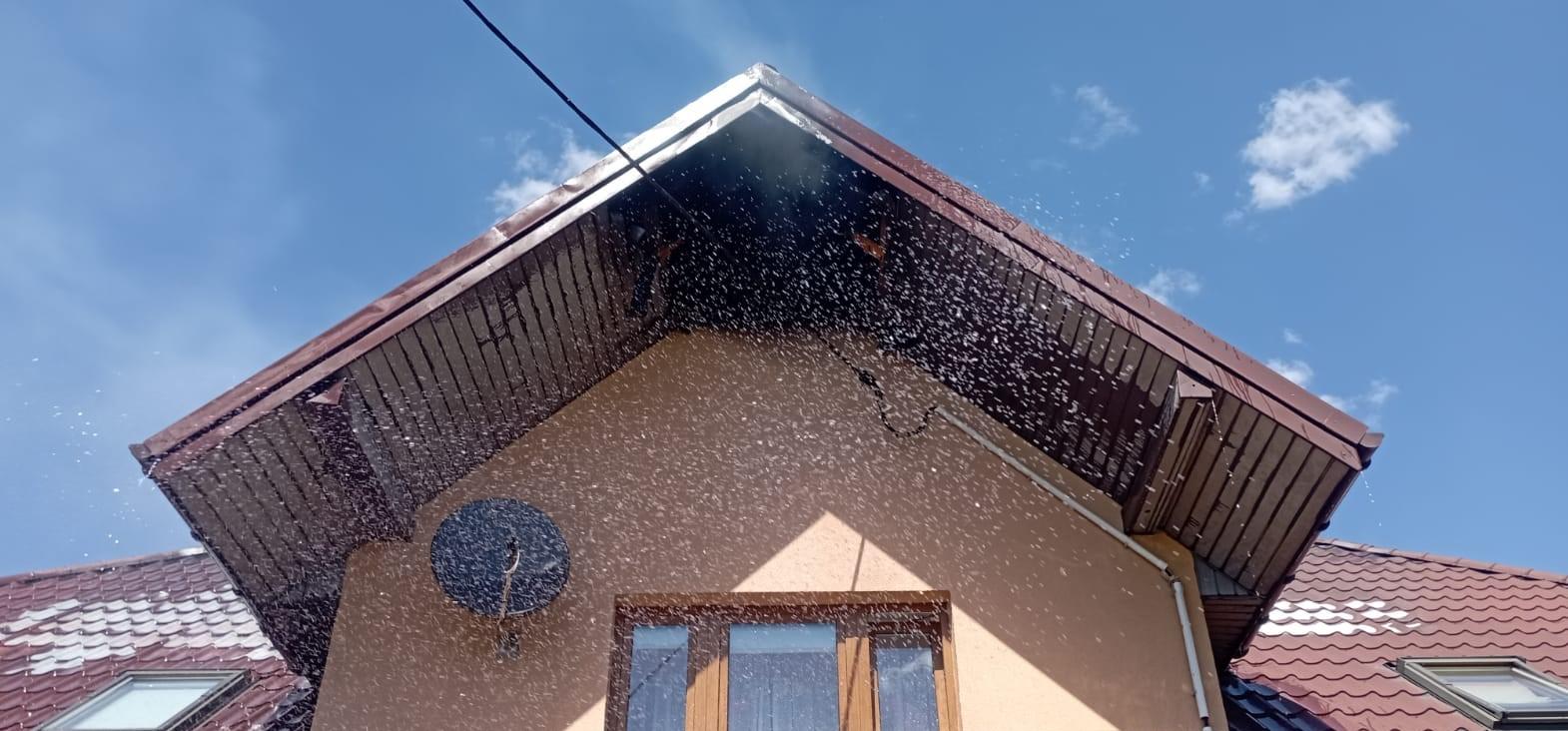 Ogień wdarł się między pokrycie, a warstwy wykończeniowe użytkowanego poddasza mieszkalnego w domu jednorodzinnym i trawił drewniane elementy więźby. W budynku przebywały 3 osoby, które wyszły na zewnątrz i nie wymagały pomocy medycznej. Na ratunek przybyło 8 zastępów straży pożarnej. Ratownicy zabezpieczyli teren działań i gasili palący się dach demontując fragmenty pokrycia aby odsłonić ukryte ogniska pożaru. Jednocześnie prowadzili ewakuację mienia ograniczając jego niszczenie. Po ugaszeniu ognia budynek oddymiono i przewietrzono, a na zakończenie skontrolowali obiekt kamerą termowizyjną i urządzeniami pomiarowymi wykluczając zagrożenie.