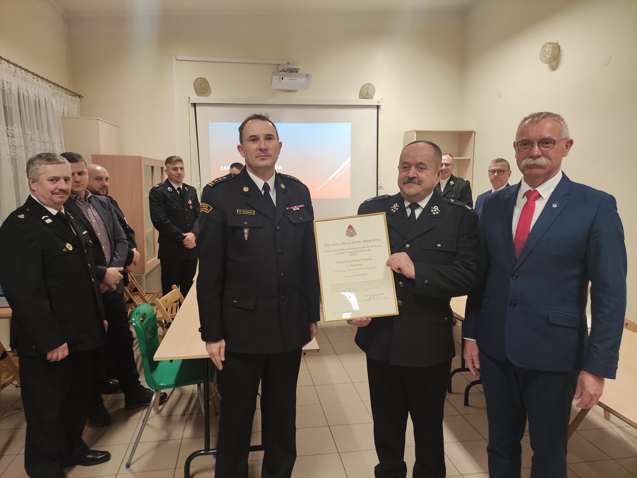 W spotkaniu udział wziął Zastępca Komendanta Miejskiego Państwowej Straży Pożarnej w Kielcach st. bryg. Marcin Charuba, który w swoim wystąpieniu omawiając bieżące problemy poruszył między innymi kwestię przyznawanych świadczeń ratowniczych dla druhów podkreślając, że w powiecie kieleckim wydano już 720 pozytywnych decyzji w tej sprawie. Korzystając z możliwości st. bryg. Marcin Charuba wręczył prezesowi OSP Ciekoty Andrzejowi Bawół decyzję, która przedłuża na 5 lat działalność jednostki w strukturach krajowego systemu ratowniczo-gaśniczego. To wynik podpisanego 16 sierpnia ubiegłego roku porozumienia. Druhowie omówili miniony rok, osiągnięcia, realizacje zadań i porażki oraz snuli plany na przyszłość tą bliższą oraz na dalsze lata. Życzymy strażakom – ochotnikom realizacji wszelkich planów oraz radości i satysfakcji, którą daje niesienie pomocy.