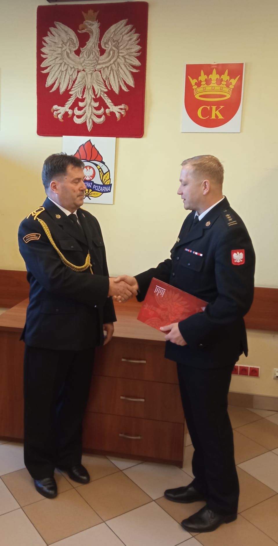 Zastępca Komendanta Miejskiego Państwowej Straży Pożarnej w Kielcach st. bryg. Piotr Sokól w imieniu własnym i funkcjonariuszy pożegnał opuszczającego służbę st. ogn. Zdzisława Sęka życząc mu jednocześnie zdrowia, spokoju oraz satysfakcji z realizacji wszystkich zamierzeń i planów osobistych wykorzystujących pozyskany czas wolny. St. ogn. Zdzisław Sęk decyzją Komendanta Miejskiego Państwowej Straży Pożarnej został zwolniony z dniem 30 listopada 2024 roku po ponad 38 latach pracy zawodowej w tym prawie 25 latach służby.