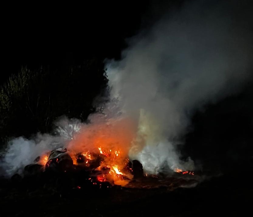 W Brzechowie gmina Daleszyce doszło do pożaru 50 sztuk balotów siana.