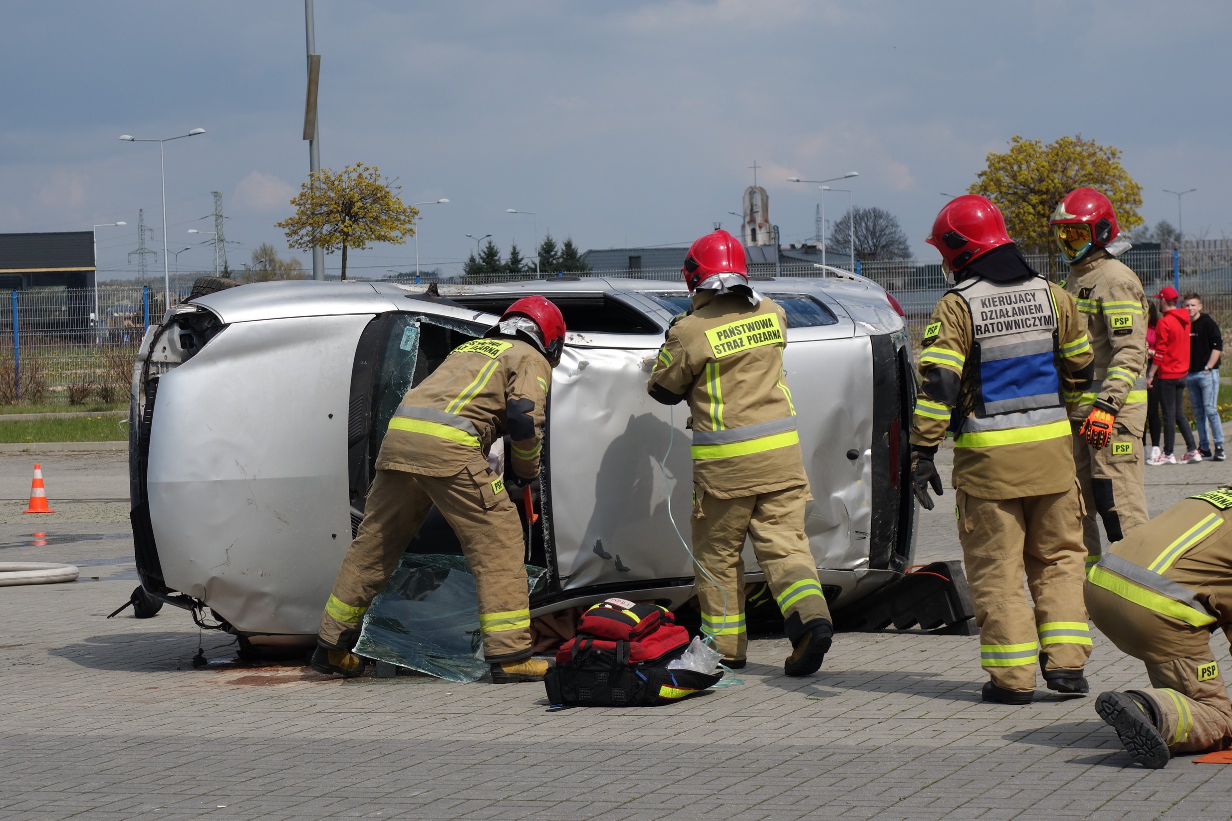 Aby pokaz był bardziej realistyczny na terenie działań pojawiła się grupa gapiów, którą zagrała młodzież kieleckich szkół. To oni, jako przyszli użytkownicy naszych ulic są głównym adresatem przekazu o bezpieczeństwie w komunikacji.