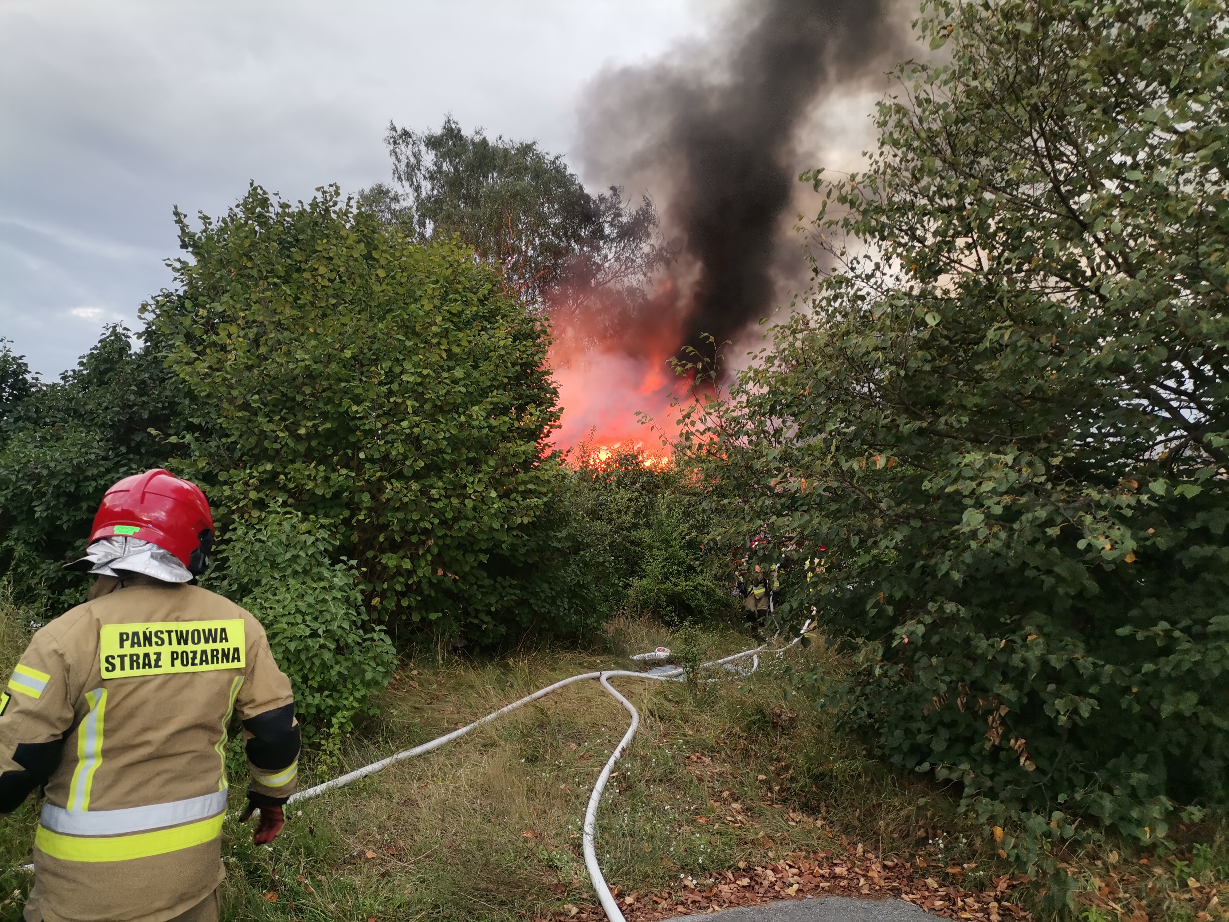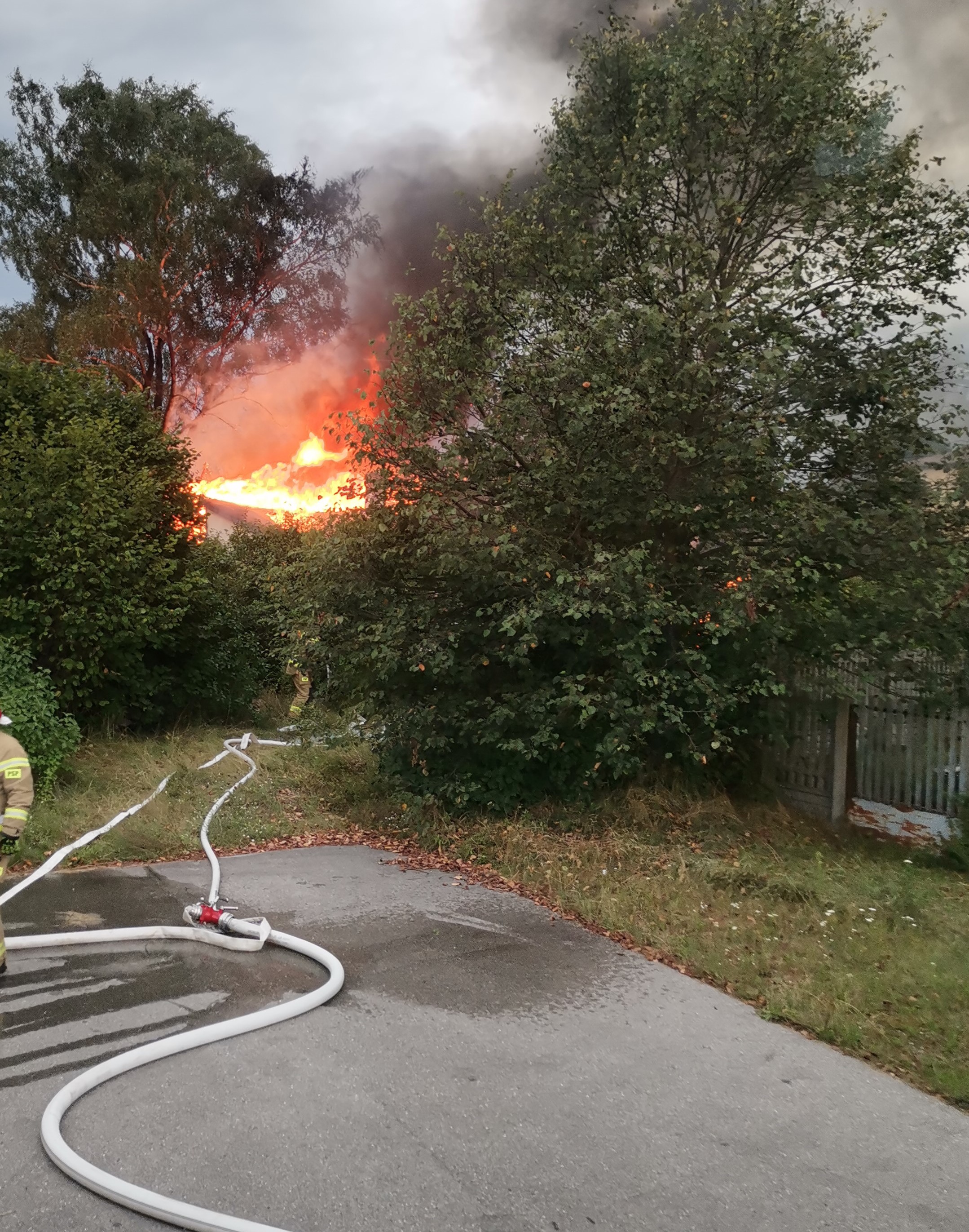 Na ratunek ruszyło 7 zastępów straży pożarnej, które zastały niezamieszkały drewniany budynek mieszkalny w całości objęty ogniem. Strażacy zabezpieczyli teren działań i podając 2 prądy wody ugasili pożar. Dalsze działania polegały na oddymieniu i przewietrzeniu ocalałych pomieszczeń i przeszukaniu zgliszczy pod kątem obecności osób. Ratownicy potwierdzili, że nikt nie został poszkodowany. Zdemontowali także nadwyrężone przez ogień elementy konstrukcyjne, a na zakończenie, wykonując kontrolę kamerą termowizyjną potwierdzili brak zagrożenia pożarowego.