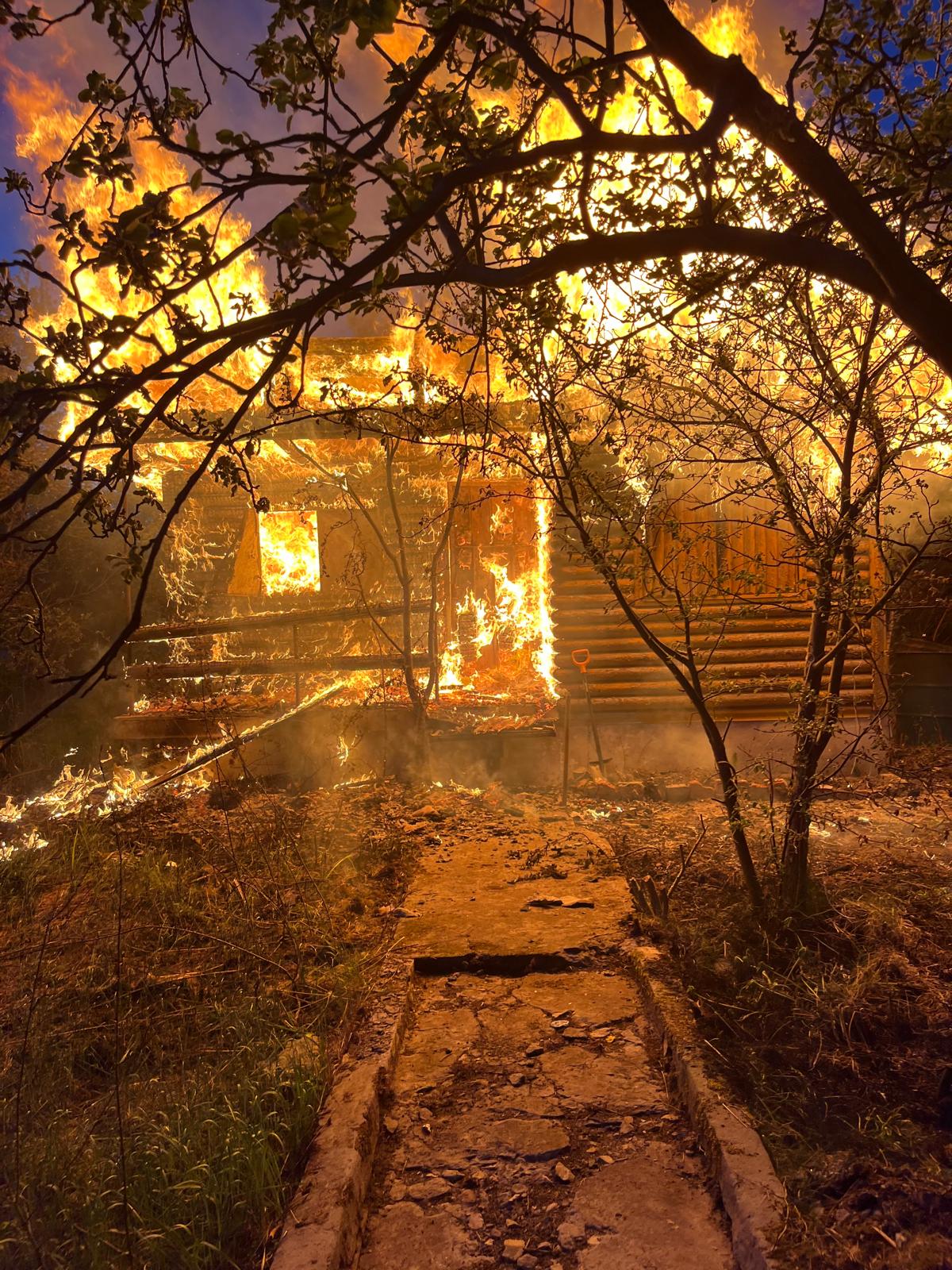 Cały budynek rekreacyjny objęty był pożarem – palił się zarówno dach, ściany, jak i wyposażenie wnętrza. Strażacy, po zabezpieczeniu miejsca przystąpili do walki z ogniem. Po ugaszeniu pożaru ratownicy przystąpili do rozbiórki nadpalonych elementów więźby dachowej i ścian, usunięcia spalonego wyposażenia oraz sukcesywnego przelewania pogorzeliska w celu eliminacji zarzewi ognia. Budynek został dokładnie przeszukany – nie znaleziono żadnych osób poszkodowanych. Pogorzelisko sprawdzono kamerą termowizyjną, nie stwierdzono zagrożenia pożarowego. Akcja gaśnicza trwała ponad dwie godziny.