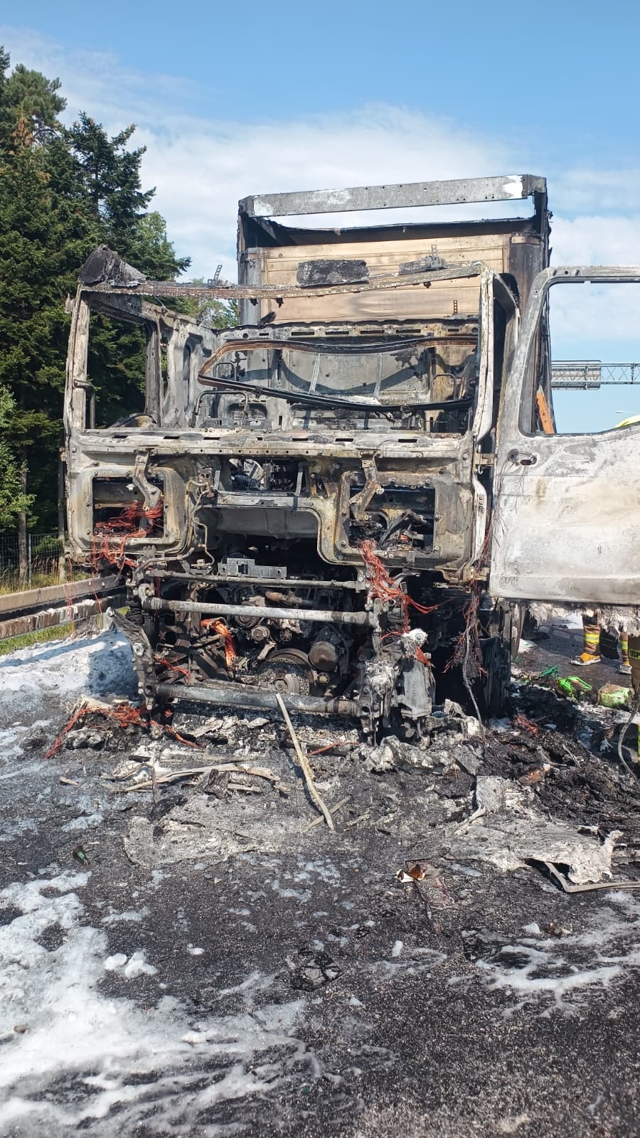 Podczas jazdy trasą S7 w okolicy miejscowości Gruszka gmina Zagnańsk zapaliła się kabina ciągnika siodłowego MAN z naczepą wypełnioną ładunkiem piwa.