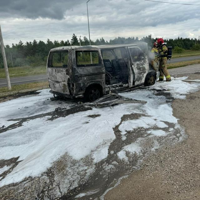 Volkswagen Transporter, którym podróżował jedynie kierowca zaczął się palić jadąc drogą wojewódzką numer 786. Kierowca bezpiecznie zaparkował go na poboczu i sam wysiadł z auta nie doznając żadnych obrażeń. Do akcji ruszyły 2 zastępy straży pożarnej i ratownicy, po zabezpieczeniu miejsca, błyskawicznie ugasili ogień strumieniem piany. Następnie wrak pojazdu schłodzili wodą, a na zakończenie skontrolowali go kamerą termowizyjną potwierdzając skuteczność swoich działań – nie znaleziono elementów o podwyższonej temperaturze.