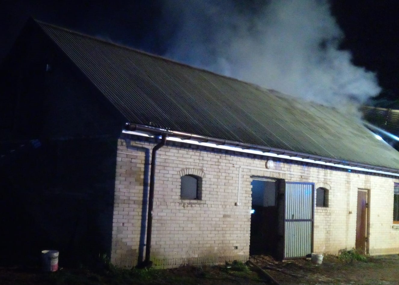 Na poddaszu budynku gospodarczego zapaliło się zgromadzone tam siano. Właściciel posesji był na miejscu, a jego stan nie wymagał udzielenia pomocy medycznej. Działania 6 zastępów straży pożarnej polegały na zabezpieczeniu miejsca zdarzenia i ugaszeniu ognia trzema prądami wody. Po przygaszeniu ognia ratownicy w aparatach ochrony układu oddechowego weszli na poddasze i przez otwór po zdemontowanym fragmencie pokrycia dachowego, zrzucili siano w celu dokładnego dogaszenia. Na zakończenie miejsce pożaru dokładnie sprawdzili kamerą termowizyjną nie stwierdzając zarzewi ognia. Usuwanie skutków pożaru trwało ponad 3 godziny