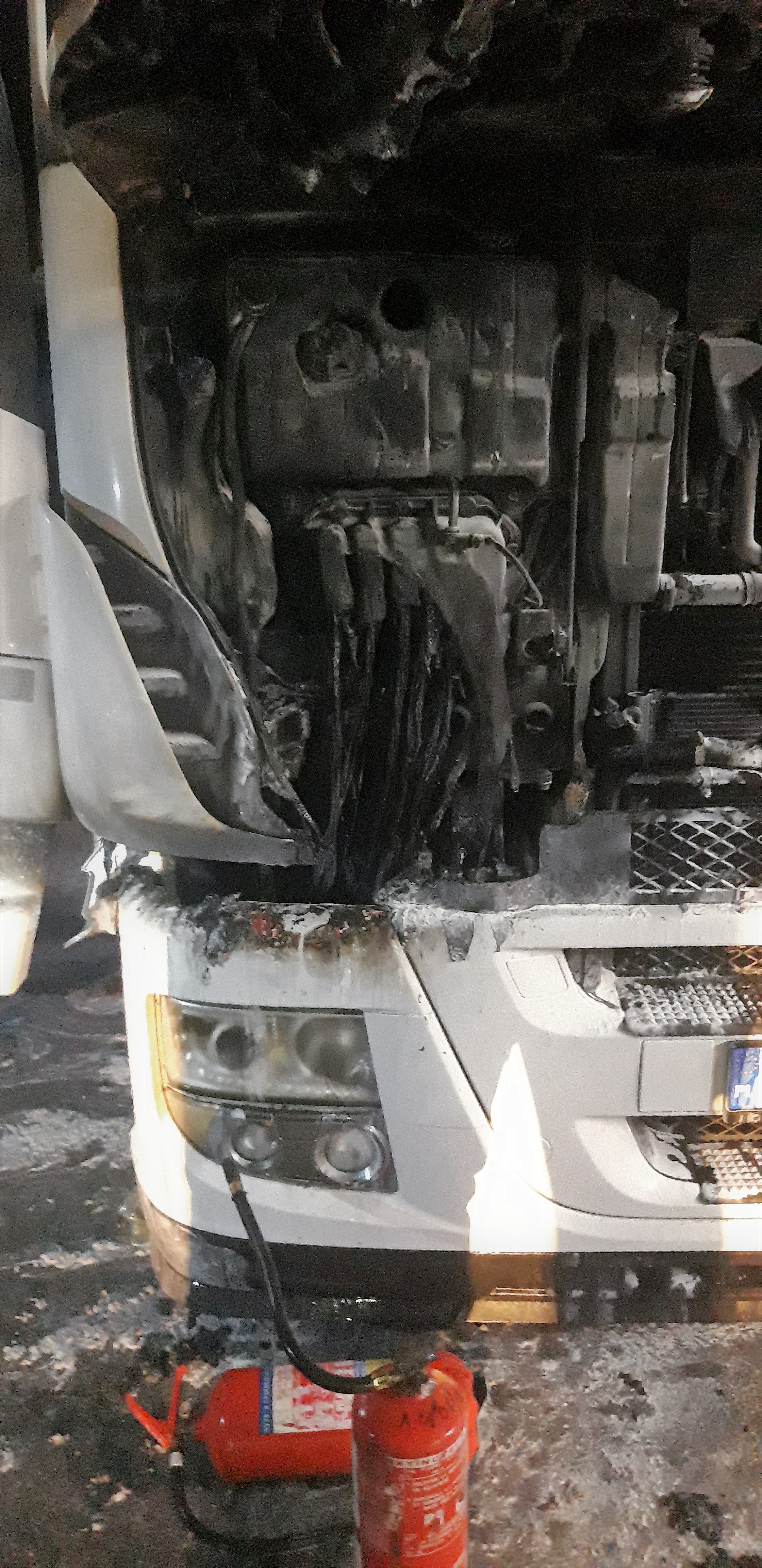 W samochodzie ciężarowym marki Iveco Stralis zapaliła się instalacja elektryczna. Pojazd znajdował się na parkingu stacji paliw, a kierowca bezpiecznie opuścił auto. Strażacy zabezpieczyli i oznakowali teren działań, odłączyli zasilanie z akumulatora w pojeździe oraz ugasili pożar strumieniem wody. Ratownicy pracowali w aparatach ochrony układu oddechowego. Na zakończenie miejsce pożaru sprawdzono kamerą termowizyjną nie znajdując żadnych zarzewi ognia.