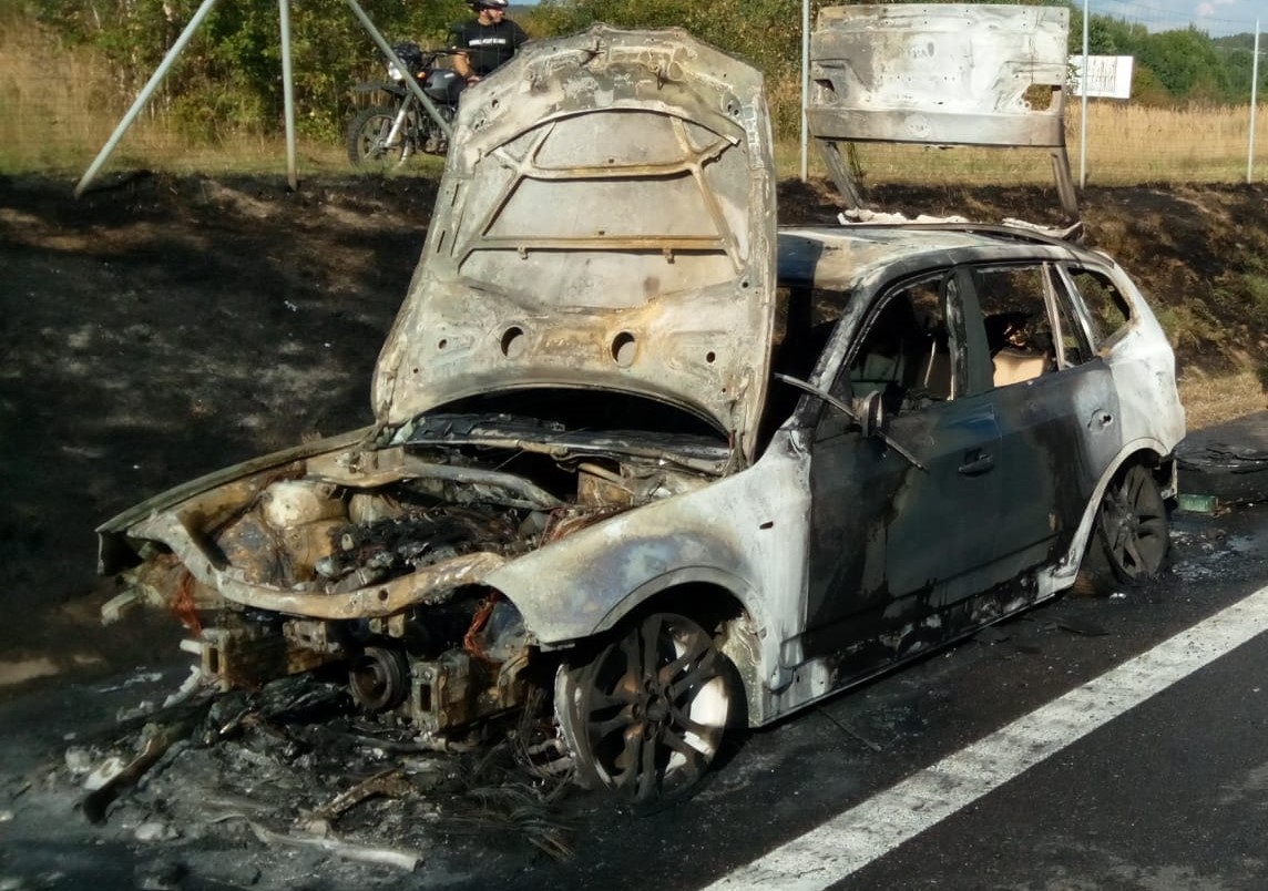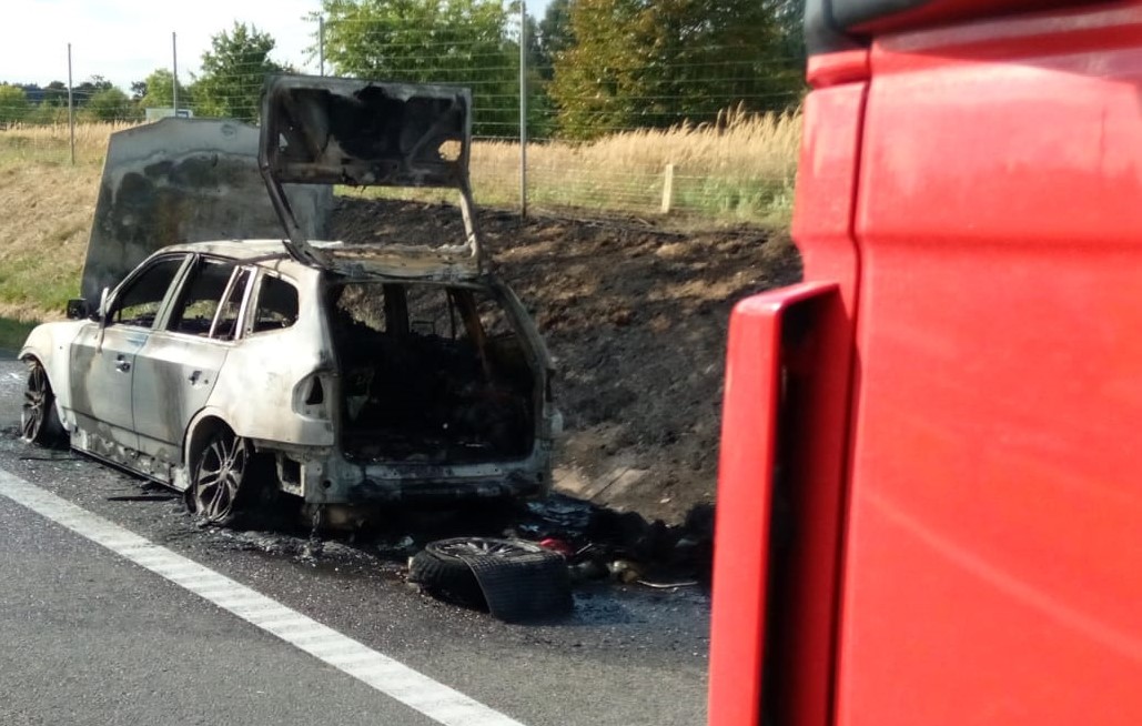 Na drodze ekspresowej S7 zapalił się samochód osobowy BMW od którego zapaliła się także trawa w przydrożnym rowie. Auto w całości objęte było ogniem i stało na poboczu jezdni w kierunku Krakowa. Pojazdem jechały dwie osoby, które samodzielnie wysiadły z niego i nie wymagały pomocy medycznej. Na miejsce przybyły 4 zastępy straży pożarnej. Ratownicy zabezpieczyli teren działań i rozpoczęli gaszenie samochodu: najpierw pianą ciężką a następnie w celu ochłodzenia strumieniem wody gasząc równocześnie rozprzestrzeniający się pożar trawy. Na zakończenie sprawdzono pojazd kamerą termowizyjną wykluczając zagrożenia. Podczas gaszenia auta ruch na pasie w kierunku do Krakowa był chwilowo wstrzymany.