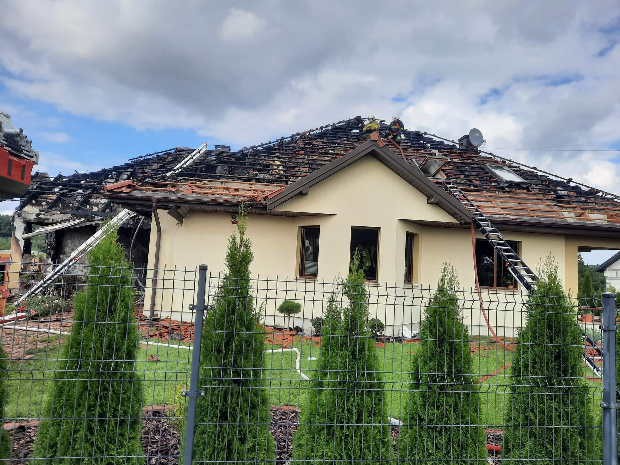 Pożar w Brzezinach – zniszczony dom jednorodzinny
