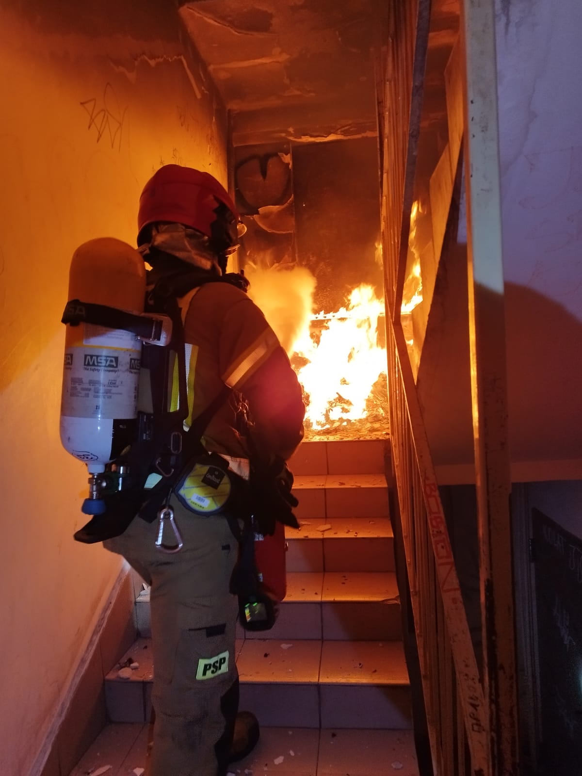 Do zdarzenia zadysponowano 4 zastępy Państwowej Straży Pożarnej. Na klatce schodowej w wielorodzinnym budynku panowało zadymienie i czuć było zapach spalenizny. Przed przybyciem służb 3 osoby wyszły na zewnątrz. Pożar wybuchł na spoczniku między 7 a 8 piętrem i objął około 4 m2 zgromadzonych śmieci. Ratownicy zabezpieczeni w aparaty ochrony dróg oddechowych weszli do wnętrza, ugasili ogień i przewietrzyli klatkę schodową. W wyniku zdarzenia nikomu nic się nie stało. Na zakończenie strażacy wykonali sprawdzenia pogorzeliska i atmosfery budynku urządzeniami, które nie wykazały żadnych zagrożeń.