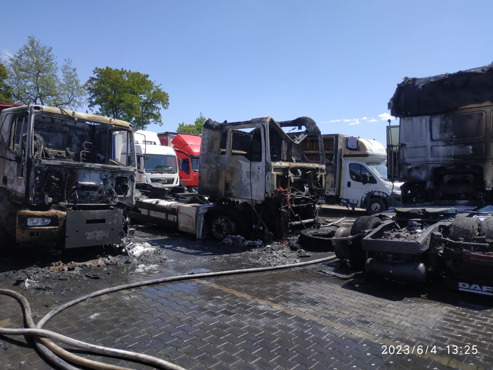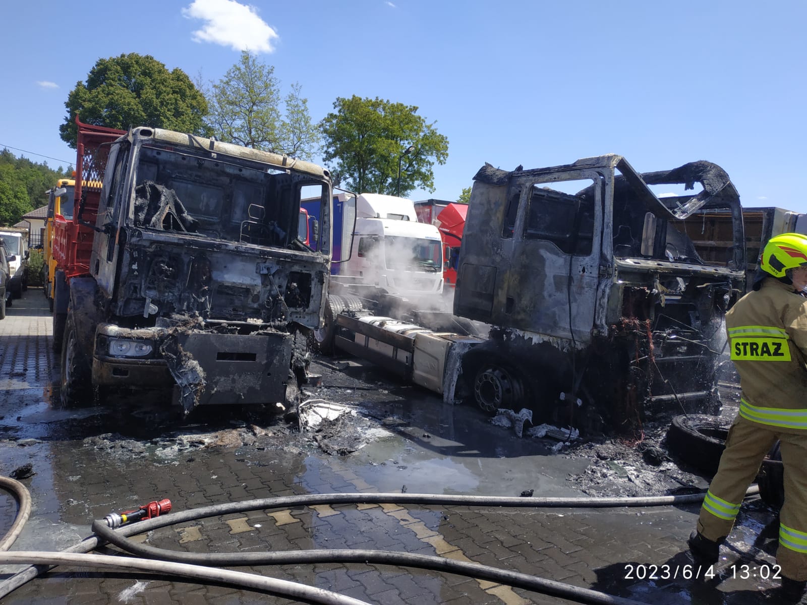4 czerwca 2023 roku około godziny 12:30 z numeru alarmowego 112 wpłynęło do Stanowiska Kierowania Komendanta Miejskiego Państwowej Straży Pożarnej w Kielcach zgłoszenie o pożarze auta ciężarowego na terenie komisu samochodowego w miejscowości Nowa Huta gmina Raków.