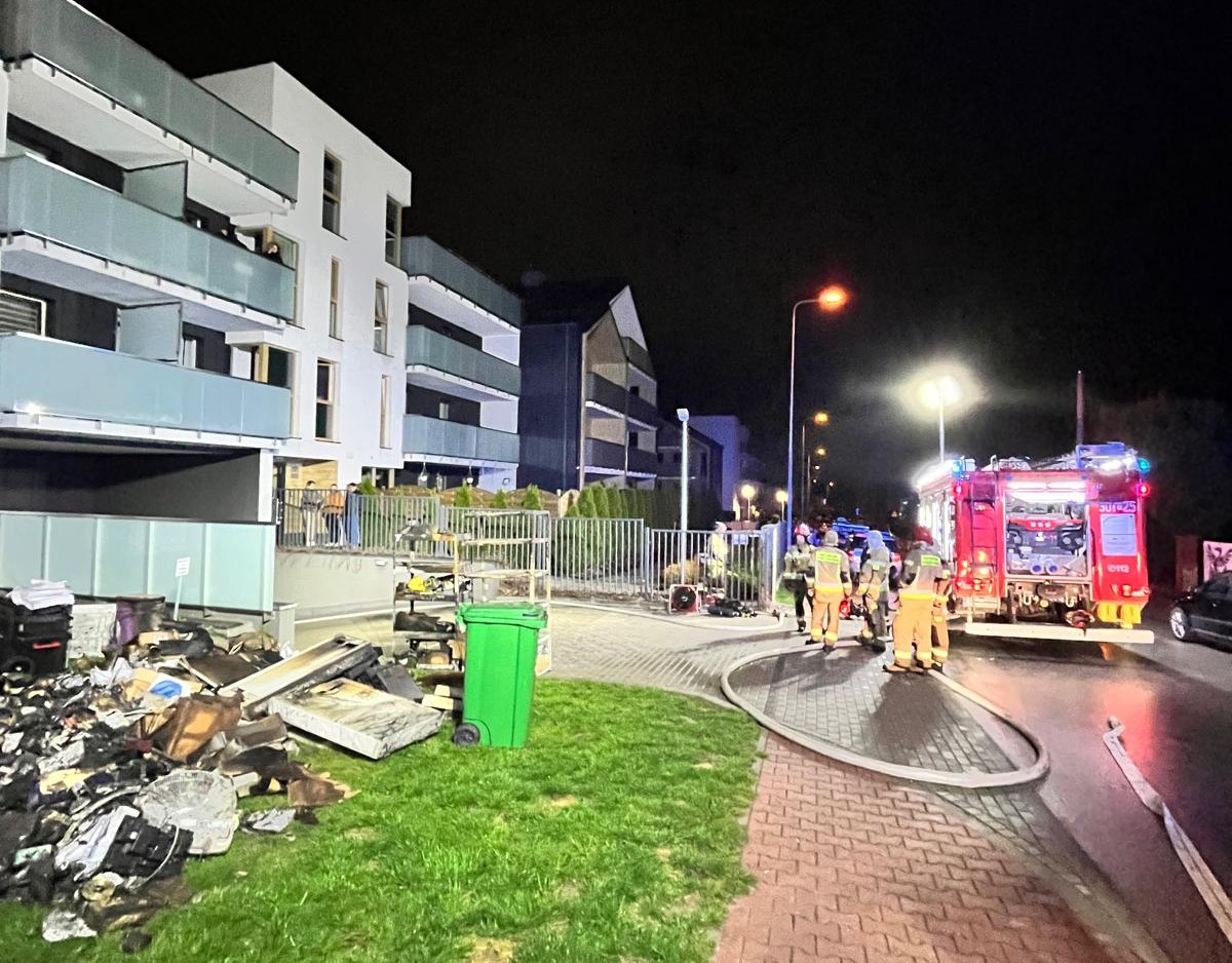 Ogień, który pojawił się w jednej z komórek lokatorskich spowodował ogromne zadymienie w całym budynku i znaczna część lokatorów wyszła z niego jeszcze zanim przyjechały zadysponowane 4 zastępy Państwowej Straży Pożarnej. Inni pozostali we własnych mieszkaniach wychodząc na balkony aby uchronić się przed gryzącym dymem, który zasnuł klatkę schodową. Strażacy ruszyli szukając źródła ognia, a po jego odnalezieniu rozpoczęli gaszenie. Jednocześnie zabezpieczyli kurtyną dymową drzwi piwniczne aby ograniczyć rozprzestrzenianie się gazów pożarowych. Część ratowników sprawdzała mieszkania budząc mieszkańców, szukając osób poszkodowanych i monitorując detektorami panującą w budynku atmosferę pod kątem obecności tlenku węgla. Nikt nie wymagał pomocy medycznej, jedynie jeden noworodek wraz z opiekunem został zabrany do szpitala. Dla mieszkańców, którzy pozostawali na zewnątrz podstawiono autobus aby mogli się w nim schronić przed nocnym chłodem. Strażacy ręcznie otworzyli bramę garażową by szybciej pozbywać się trującego dymu. Wynosili także nadpalone elementy na zewnątrz w celu ich dogaszenia. Na zakończenie pogorzelisko oraz sąsiednie komórki zostały sprawdzone kamerą termowizyjną, a po przewietrzeniu przeprowadzono kontrolę detektorem w każdym dostępnym mieszkaniu. Urządzenia nie znalazły żadnych zagrożeń. Działania trwały ponad 4 godziny.