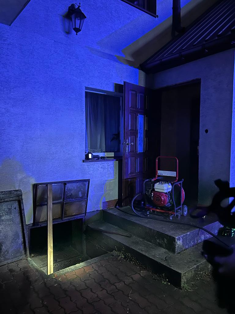 W 2-piętrowym budynku mieszkalnym, w pomieszczeniu kotłowni, w piwnicy zapaliło się przygotowane drewno opałowe. Na całej kondygnacji piwnicznej panowało silne zadymienie. Mieszkańcy samodzielnie opuścili dom i nie wymagali pomocy medycznej. Strażacy zabezpieczeni w aparaty ochrony układu oddechowego, po odłączeniu zasilania elektrycznego weszli do wnętrza budynku i ugasili ogień strumieniem wody. Równolegle przygotowano się do oddymiania i przewietrzania obiektu. Ogień zniszczył instalację elektryczną, wodociągową i kanalizacyjną w kotłowni co spowodowało wyciek wody. Ratownicy zakręcili zawór przy wodomierzu chroniąc dom przed zalaniem. Na zakończenie strażacy sprawdzili pogorzelisko kamerą termowizyjną nie znajdując zarzewi ognia oraz cały budynek detektorem, który potwierdził brak obecności niebezpiecznych gazów pożarowych.