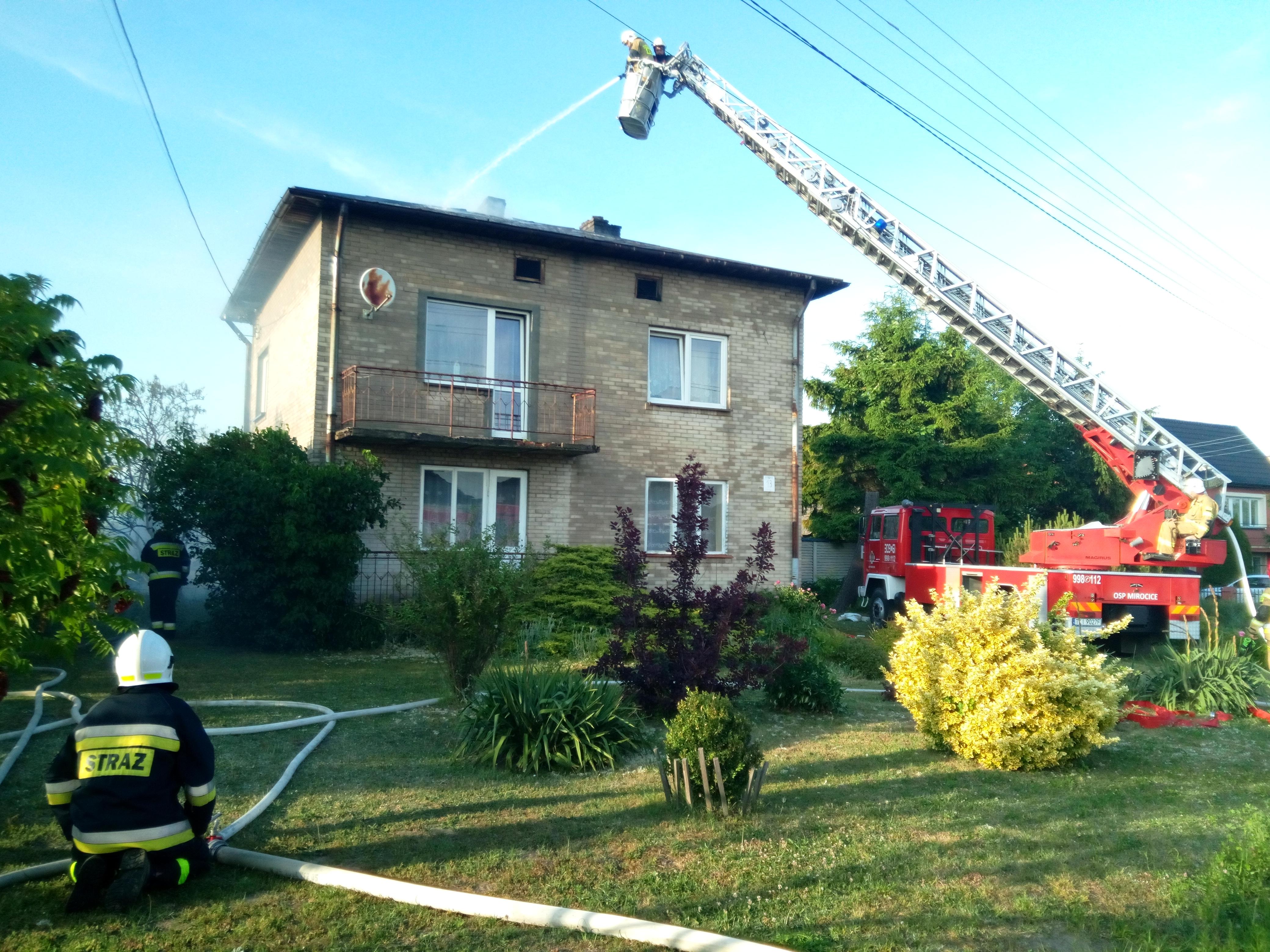 Na pomoc ruszyło 7 zastępów straży pożarnej; przybyło 32 ratowników i zastało w pełni rozwinięty pożar, który ogarnął cały budynek gospodarczy i wdarł się na gospodarcze poddasze domu mieszkalnego trawiąc drewnianą więźbę i wyposażenie. Strażacy zabezpieczyli teren i ugasili ogień podając 3 strumienie wody: klatką schodową do wnętrza budynku, wykorzystując drabinę mechaniczną z kosza drabiny na palący się dach oraz trzeci na budynek gospodarczy. Właściciel posesji bezpiecznie opuścił dom i nie wymagał udzielenia pomocy. Usunięto nadpalone materiały na zewnątrz, a miejsce zdarzenia sprawdzono kamerą termowizyjną. Ani kamera ani detektor nie wykazały żadnego zagrożenia. Na zakończenie zabezpieczony został zniszczony przez ogień dach plandekami dostarczonymi z Urzędu Miasta i Gminy Nowa Słupia.