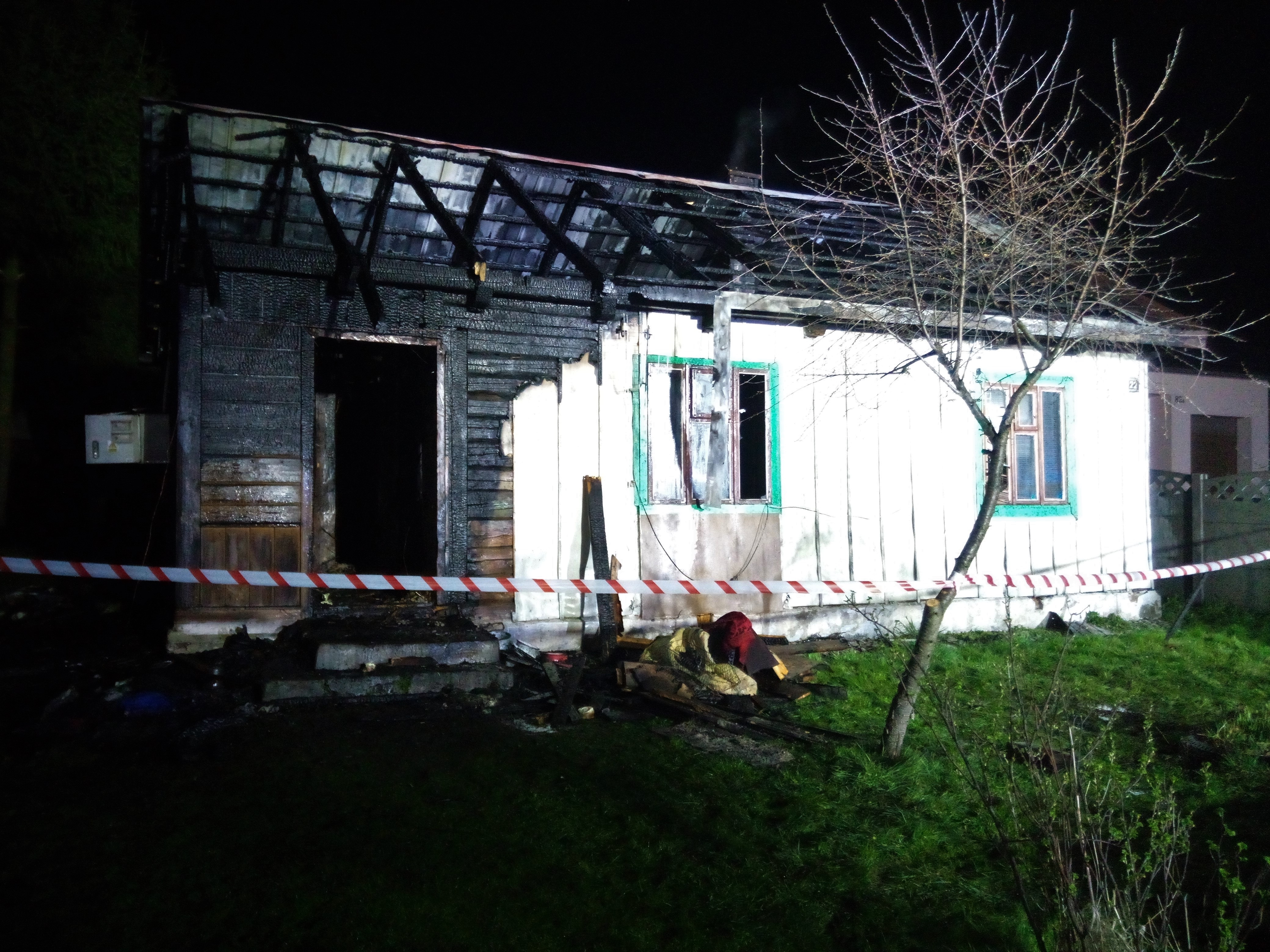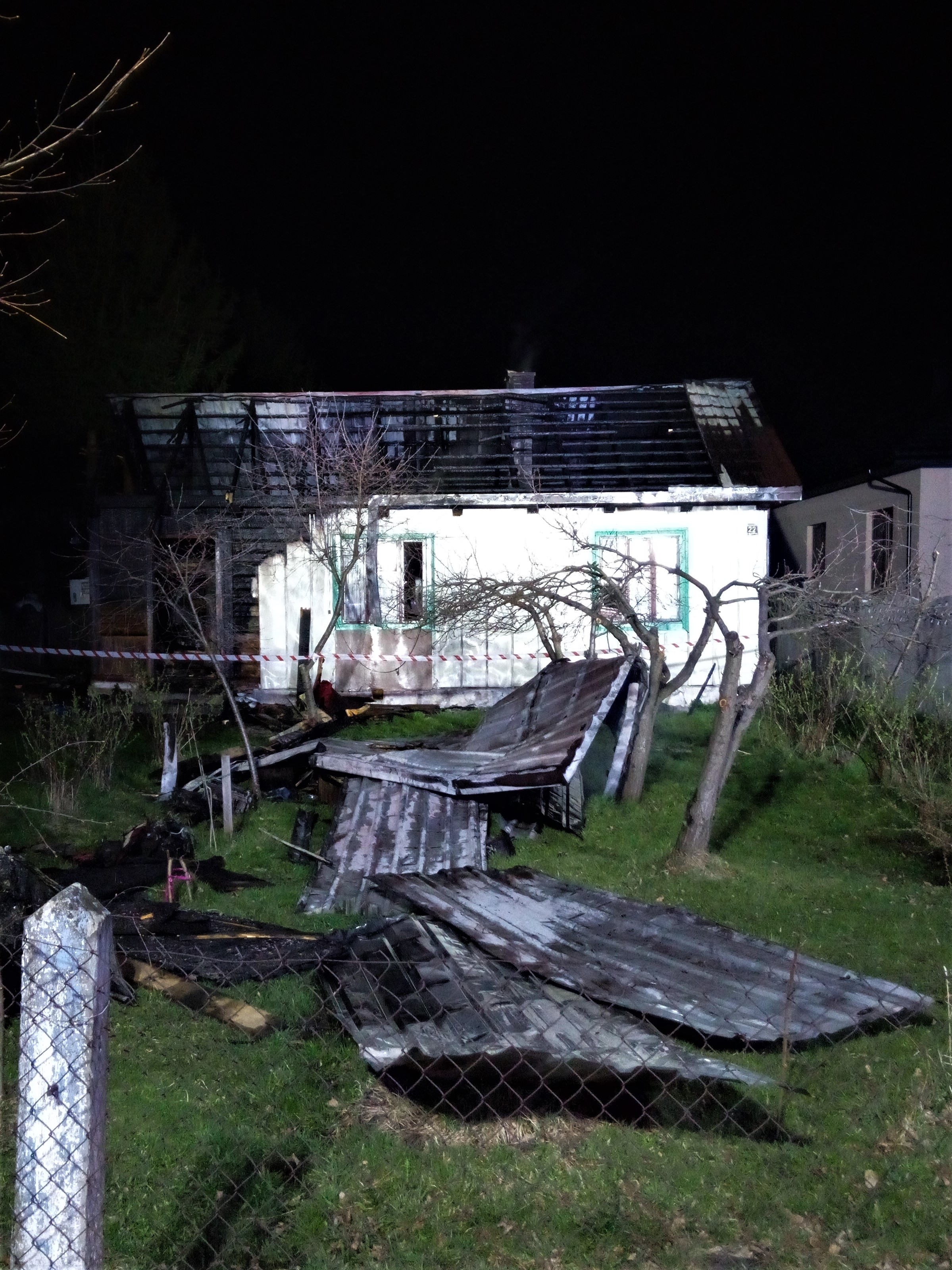 Ogień pojawił się w jednorodzinnym budynku mieszkalnym obejmując przedpokój, pokój oraz fragment dachu nad tymi pomieszczeniami. Zamieszkujący obiekt mężczyzna przed przybyciem straży pożarnej próbował nieskutecznie ugasić pożar w wyniku czego doznał poparzeń. Strażacy zabezpieczyli miejsce zdarzenia i rozpoczęli gaszenie pożaru dwoma prądami wody jednocześnie wdrażając adekwatne procedury kwalifikowanej pierwszej pomocy w stosunku do poszkodowanego. Zadysponowany Zespół Ratownictwa Medycznego przebadał mężczyznę i zabrał go do szpitala. Po przygaszeniu ognia ratownicy rozpoczęli rozbiórkę nadpalonych fragmentów konstrukcji dachu, sprawdzając i monitorując kamerą termowizyjną budynek. Dogaszono pożar i zlikwidowano lokalizowane zarzewia ognia. Po zakończeniu tej trwającej ponad 3 godziny akcji ratowniczo-gaśniczej 6 zastępów straży pożarnej w tym 31 ratowników powróciło do jednostek.