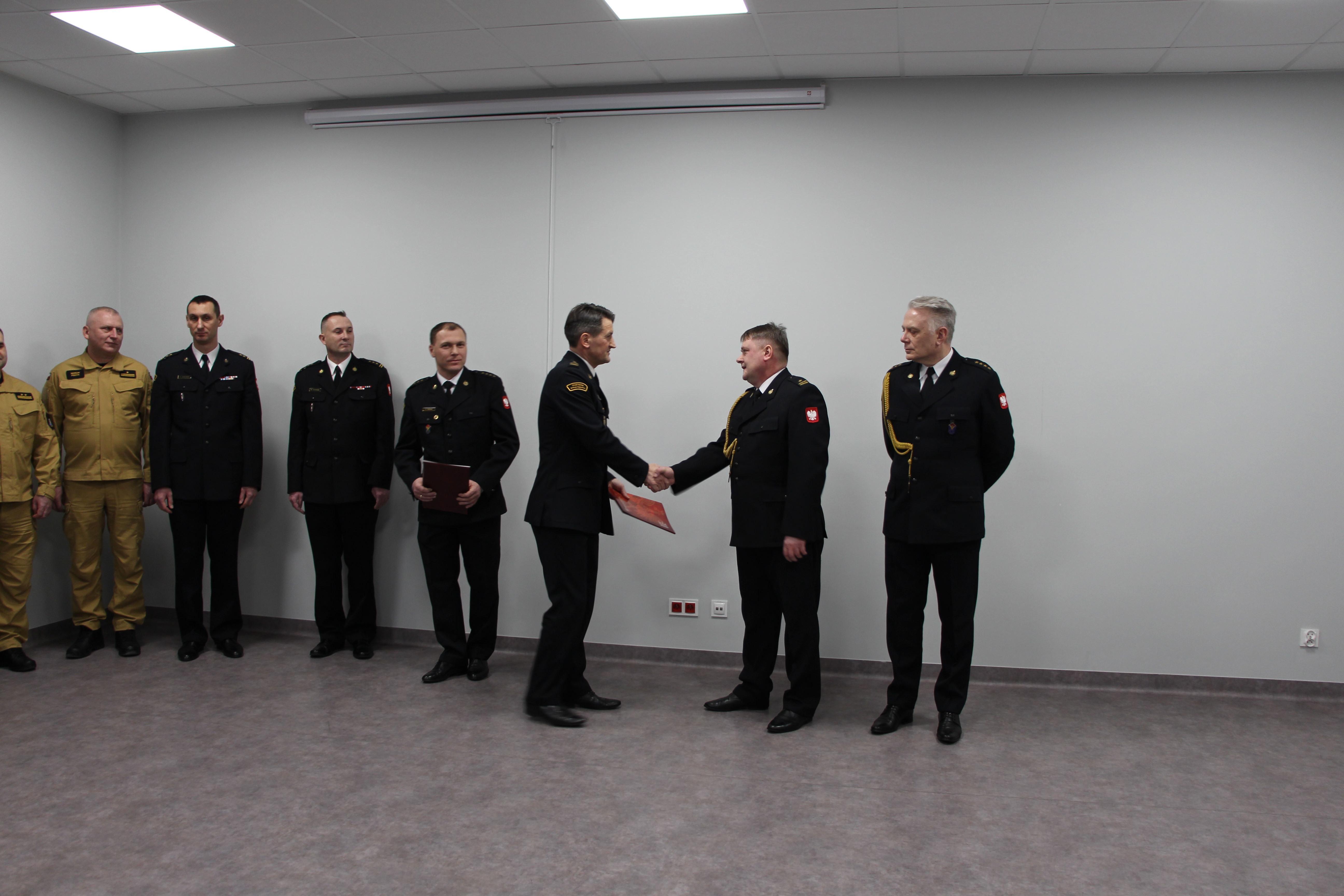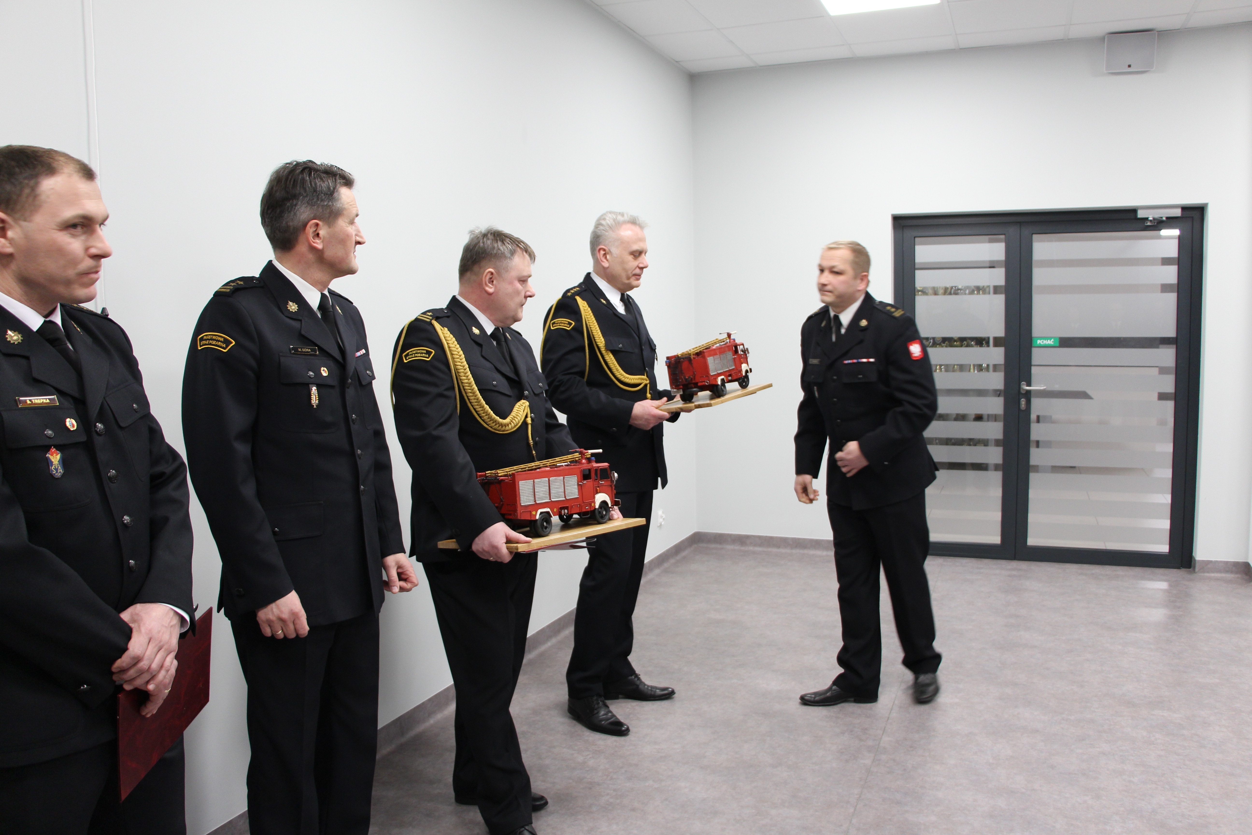 W uroczystym pożegnaniu funkcjonariuszy uczestniczył Komendant Miejski Państwowej Straży Pożarnej w Kielcach bryg. Mariusz Góra, który przybliżył postacie odchodzących pracowników Stanowiska Kierowania Komendanta Miejskiego Państwowej Straży Pożarnej w Kielcach. Mł. bryg. Andrzej Madej swą przygodę z Państwową Strażą Pożarną rozpoczął w 1996 roku zostając słuchaczem Szkoły Aspirantów PSP w Poznaniu. Dalsze lata służby praktycznie w całości związał z Stanowiskiem Kierowania Komendanta Miejskiego PSP w Kielcach, których w sumie uzbierało się 26. St. kpt. Robert Roszewski do służby wstąpił rok później czyli w 1997. Jego ścieżka rozwoju zawodowego prowadziła przez Jednostki Ratowniczo-Gaśnicze Numer 3 i 2 w Kielcach, by w roku 2012 zasiąść w fotelu zastępcy dyżurnego operacyjnego na SKKM PSP. Obaj funkcjonariusze w ostatnich latach służyli na tej samej zmianie. Komendant miejski podziękował im w imieniu swoim oraz współpracowników za służbę i zaangażowanie w realizowane zadania oraz złożył życzenia doskonałego zdrowia, spełnienia marzeń oraz realizacji planów na które dotąd nie było czasu. Był czas także na wspomnienia oraz anegdoty, których przez te lata trochę się uzbierało, a współpracownicy przygotowali dla odchodzących pamiątkowe prezenty.
