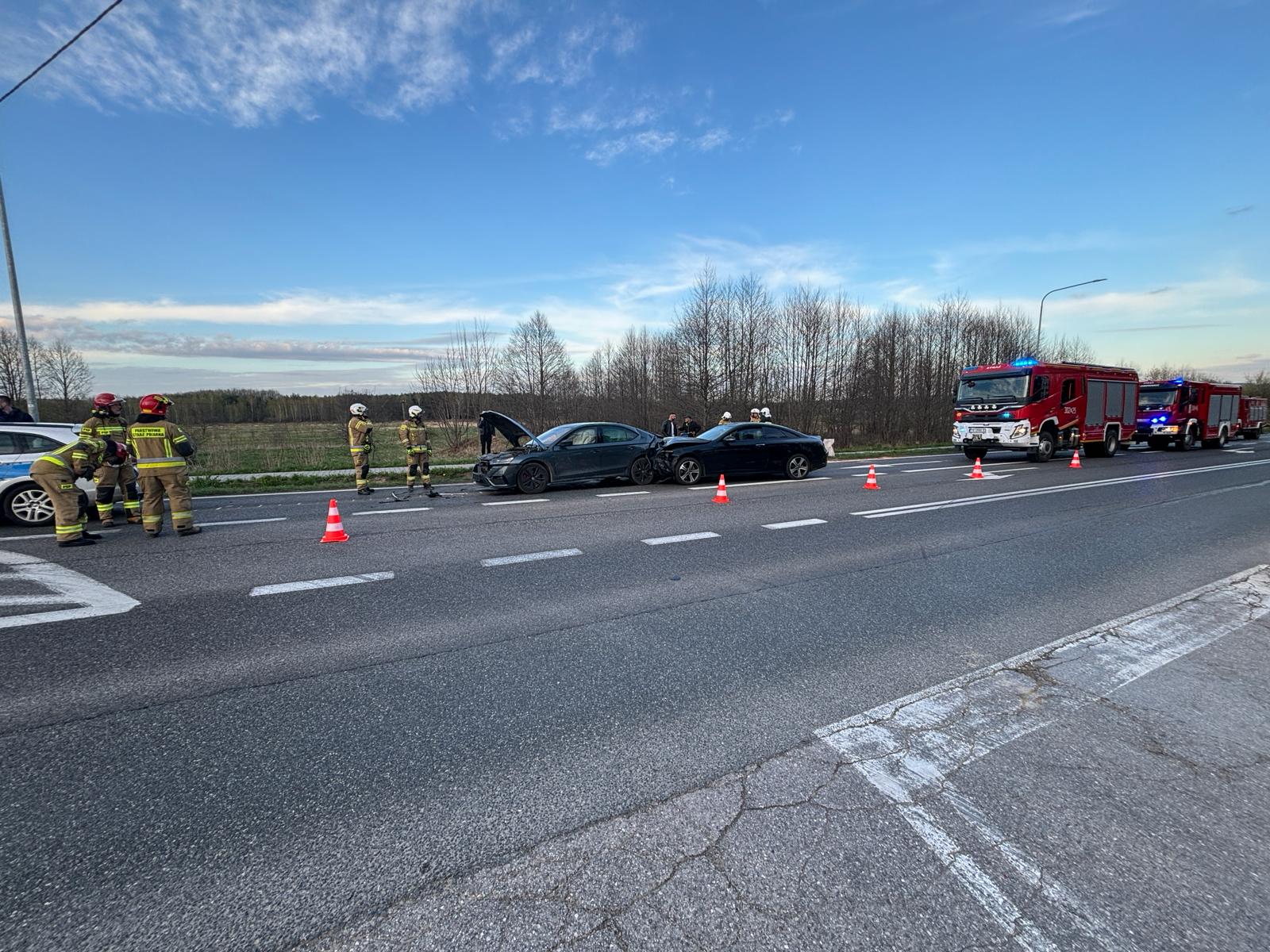 Na drodze krajowej numer 74 zderzyły się 3 samochody osobowe: Mercedes, Skoda Octavia i Mercedes Vito. Pojazdami podróżowali jedynie kierujący, którzy samodzielnie wysiedli z aut. Osoby były pod opieką Zespołu Ratownictwa Medycznego. Żaden z uczestników nie wymagał zabrania do szpitala. Do zdarzenia zadysponowano 3 zastępy straży pożarnej, a funkcjonariusze zabezpieczyli i oznakowali teren działań, odłączyli zasilanie z akumulatorów we wszystkich samochodach i, po uprzątnięciu uszkodzonych pojazdów z drogi, usunęli powstałe na jezdni w wyniku kolizji wycieki. Podczas działań ruch odbywał się jednym pasem drogi.
