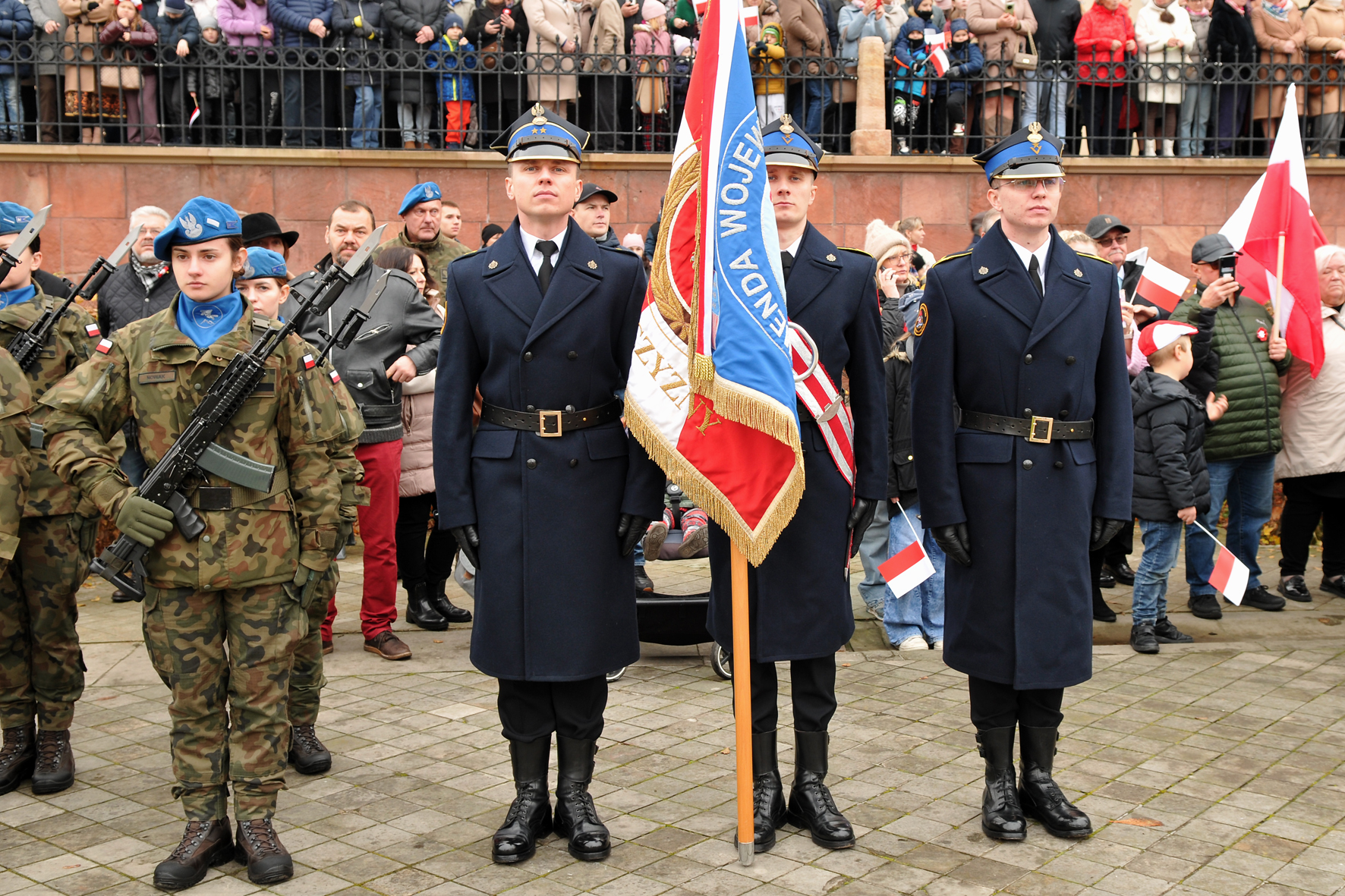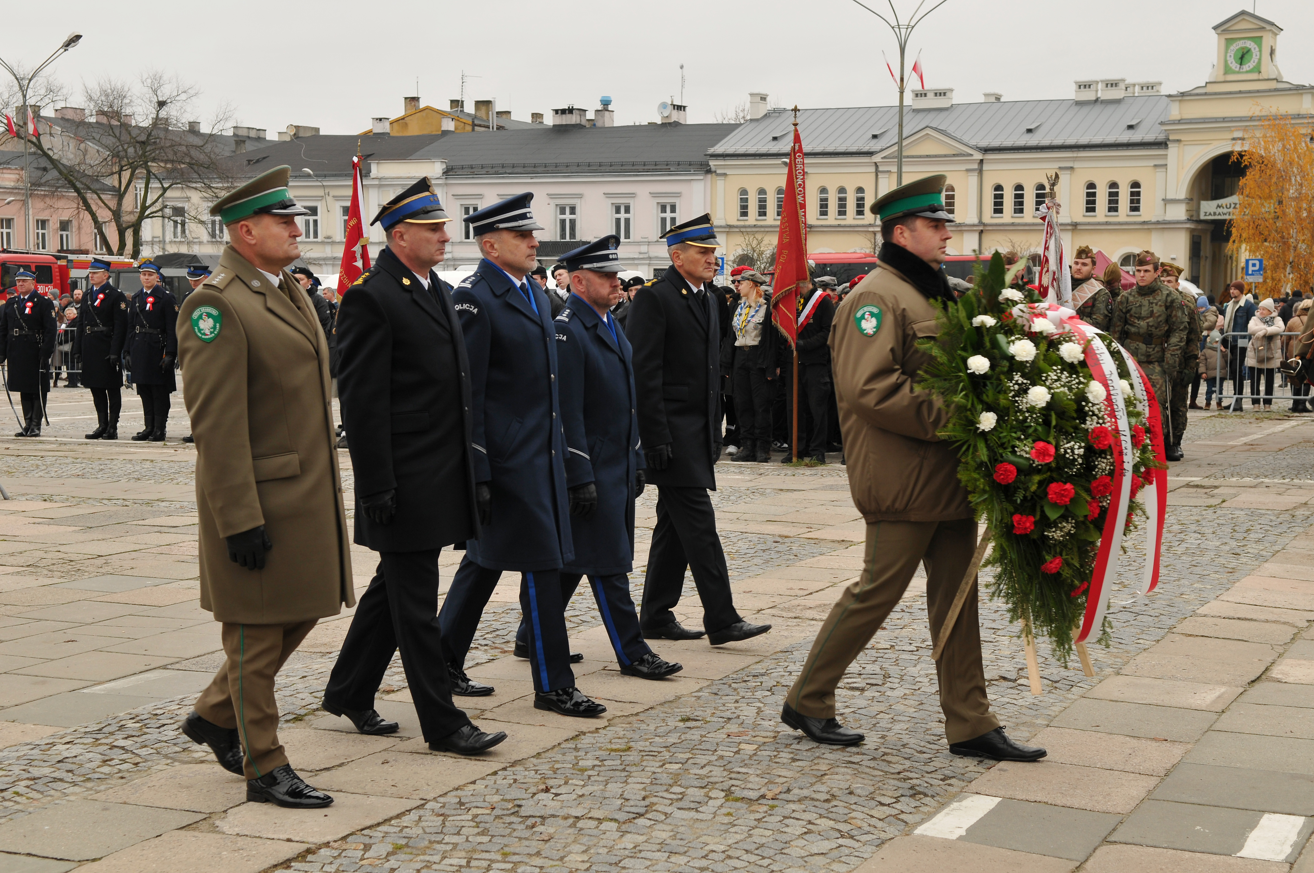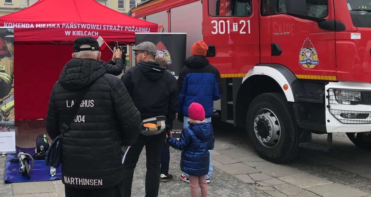 Tak strażacy rozpoczęli świętowanie 107 rocznicy najważniejszego wydarzenia w historii Polski. Na maszty wciągnięto biało-czerwoną, a ratownicy śpiewając Mazurka Dąbrowskiego oddali hołd tym, którzy wywalczyli nam niepodległość. Główne obchody święta w Kielcach, w których uczestniczył Komendant Miejski st. bryg. Mariusz Góra, odbywały się na Placu Wolności. Po mszy świętej w Bazylice Katedralnej uczestnicy wspólnie odśpiewali hymn i ruszyli przez centrum miasta, by pod pomnikiem Marszałka Józefa Piłsudskiego złożyć wieńce i zapalić znicze. Tam też zabrali się mieszkańcy miasta aby wspólnie świętować. Uczestnicy wydarzenia mogli odwiedzać stoiska zorganizowane przez służby. Komenda Miejska Państwowej Straży Pożarnej w Kielcach zorganizowała stoisko profilaktyczne gdzie strażacy rozmawiali ze zwiedzającymi o bezpieczeństwie pożarowym, a szczególnie o konieczności posiadania czujek dymu i tlenku węgla. Frekwencja dopisała, a biało-czerwone flagi i kotyliony ozdabiały tłumy spacerujących mieszkańców.
