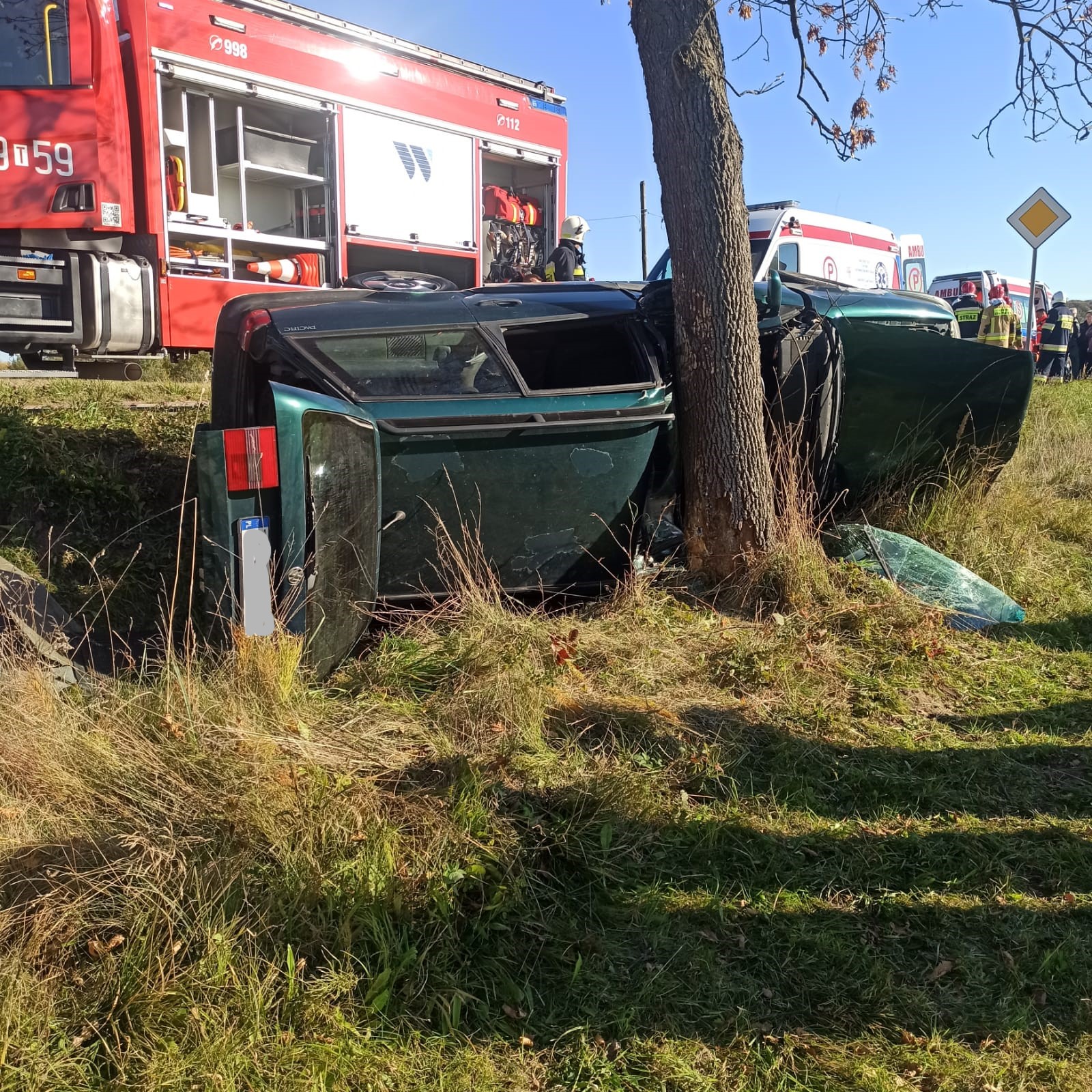 Na drodze wojewódzkiej numer 756 samochód osobowy Volkswagen Passat wypadł z jezdni i uderzył w przydrożne drzewo. Autem podróżował mężczyzna z dwójką dzieci w wieku 12 i 14 lat. Wszystkie osoby znajdowały się poza pojazdem, a Zespół Ratownictwa Medycznego prowadził czynności medyczne w stosunku do wszystkich poszkodowanych. Zastępy straży pożarnej zabezpieczyły i oznakowały miejsce działań oraz odłączyły zasilanie z akumulatora w uszkodzonym samochodzie. Do zdarzenia zadysponowano śmigłowiec Lotniczego Pogotowia Ratunkowego, dla którego strażacy wyznaczyli i zabezpieczyli miejsce lądowania. Po przebadaniu wszyscy uczestnicy zdarzenia zostali zabrani do szpitala.