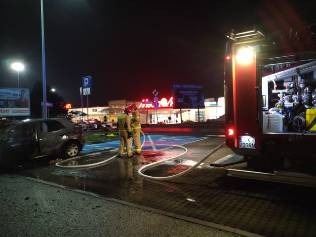 Samochód osobowy spłonął na parkingu