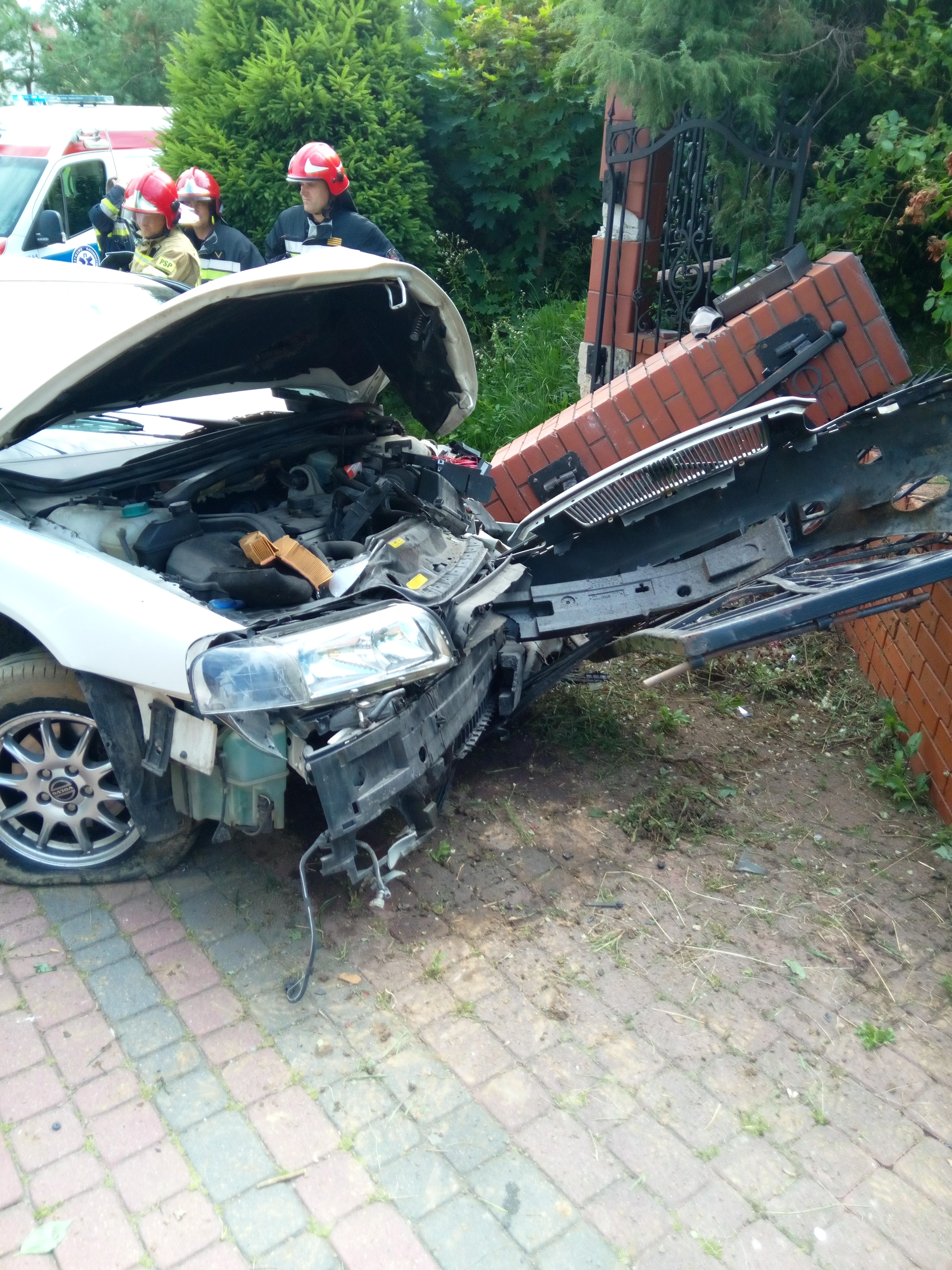 17 ratowników w 3 zastępach straży pożarnej ruszyło do akcji. Na miejscu okazało się, że samochód osobowy marki Volvo S80 wypadł z drogi i uderzył w ogrodzenie prywatnej posesji. Kierujący znajdował się w pojeździe. Strażacy, po zabezpieczeniu terenu działania i odłączeniu zasilania z akumulatora w aucie wykonali dostęp do poszkodowanego i wraz z personelem Zespołu Ratownictwa Medycznego ewakuowali go do ambulansu. Mężczyzna został zabrany do szpitala.