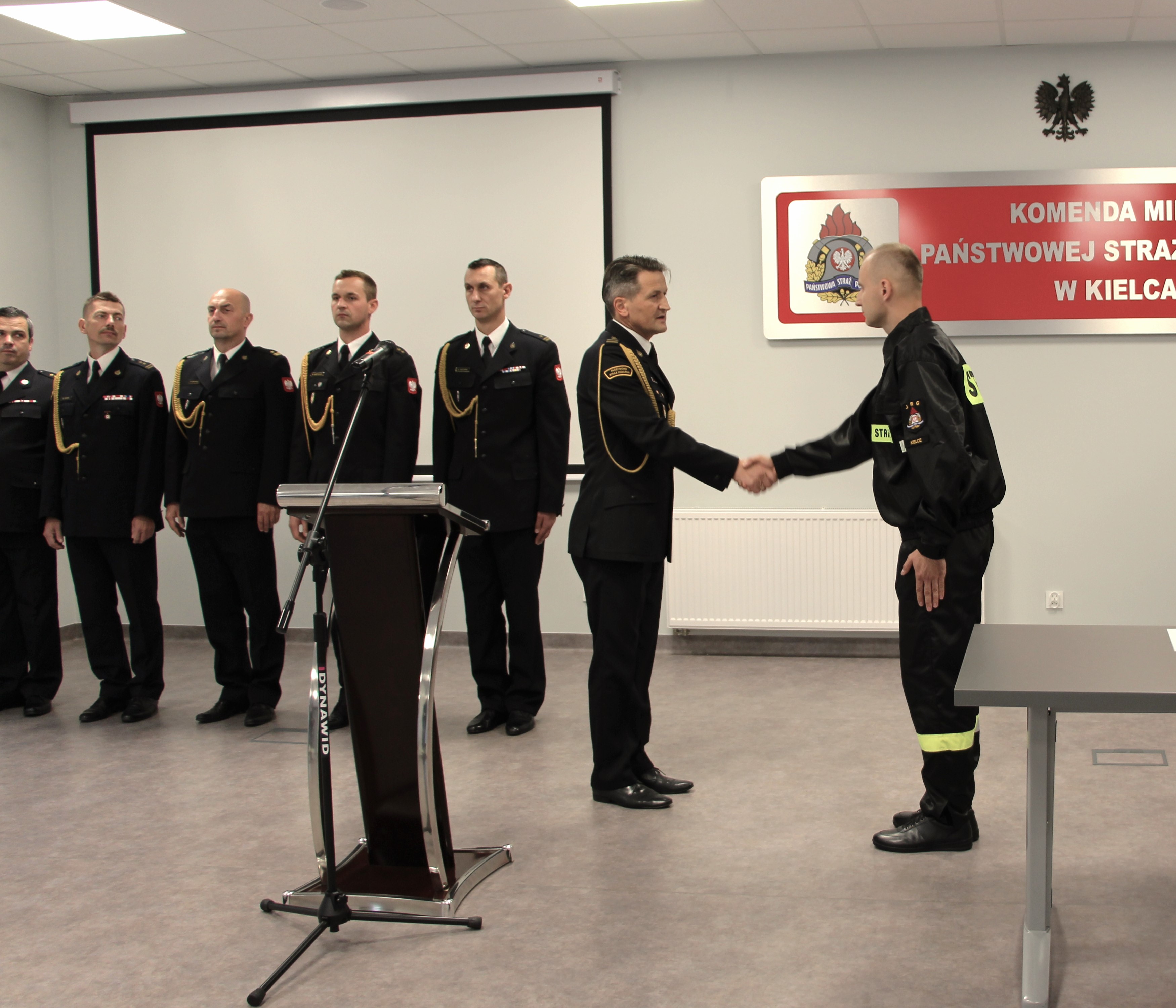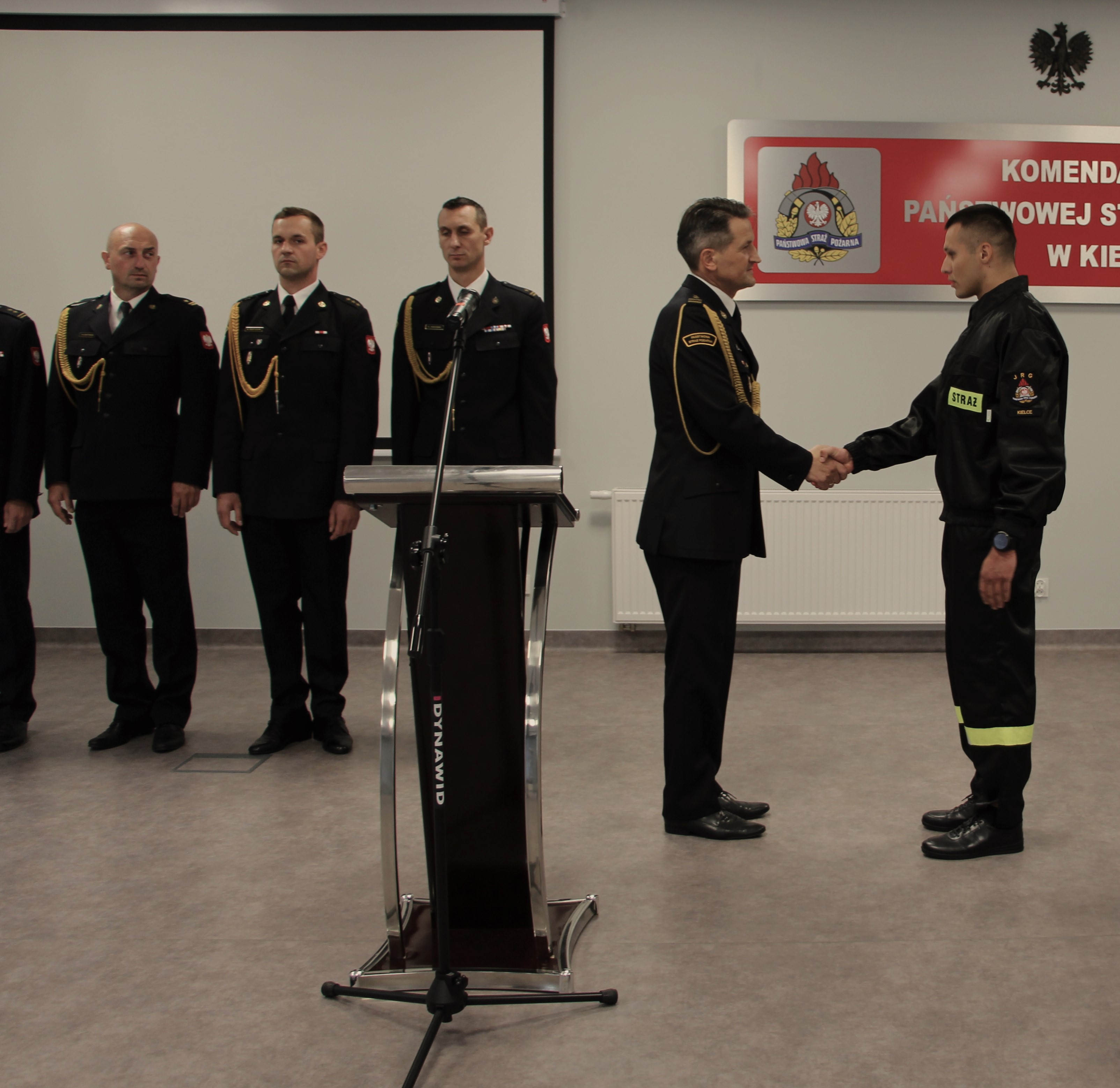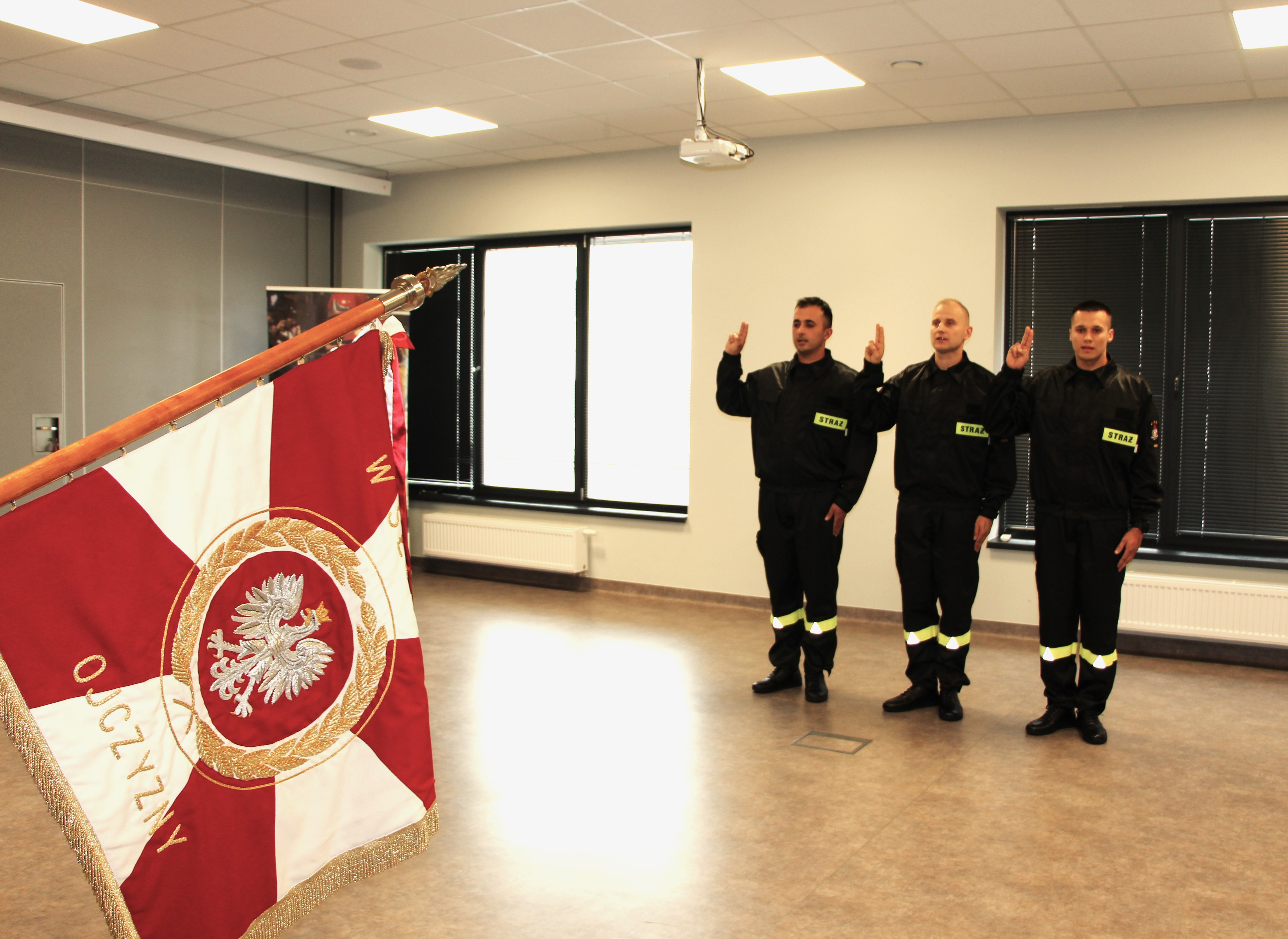 Świadkami tego podniosłego dla każdego młodego strażaka wydarzenia był Komendant Miejski Państwowej Straży Pożarnej w Kielcach bryg. Mariusz Góra, zastępca komendanta mł. Bryg. Michał Jankowski, dowódcy jednostek ratowniczo-gaśniczych komendy miejskiej oraz naczelnik Wydziału Organizacyjno-Kadrowego. 3 nowych funkcjonariuszy przed sztandarem komendy miejskiej złożyło najważniejszą przysięgę na ścieżce zawodowej, którą właśnie rozpoczynają. Wypowiedziane słowa roty potwierdzają przynależność młodego człowieka do formacji cieszącej ogromnym zaufaniem społecznym i honor jaki daje służba w obronie życia i mienia. Zanim rozpoczną służbę w jednostkach ratowniczo-gaśniczych Komendy Miejskiej Państwowej Straży Pożarnej w Kielcach nowoprzyjęci funkcjonariusze muszą teraz odbyć trzymiesięczne szkolenie podstawowe w zawodzie strażaka.