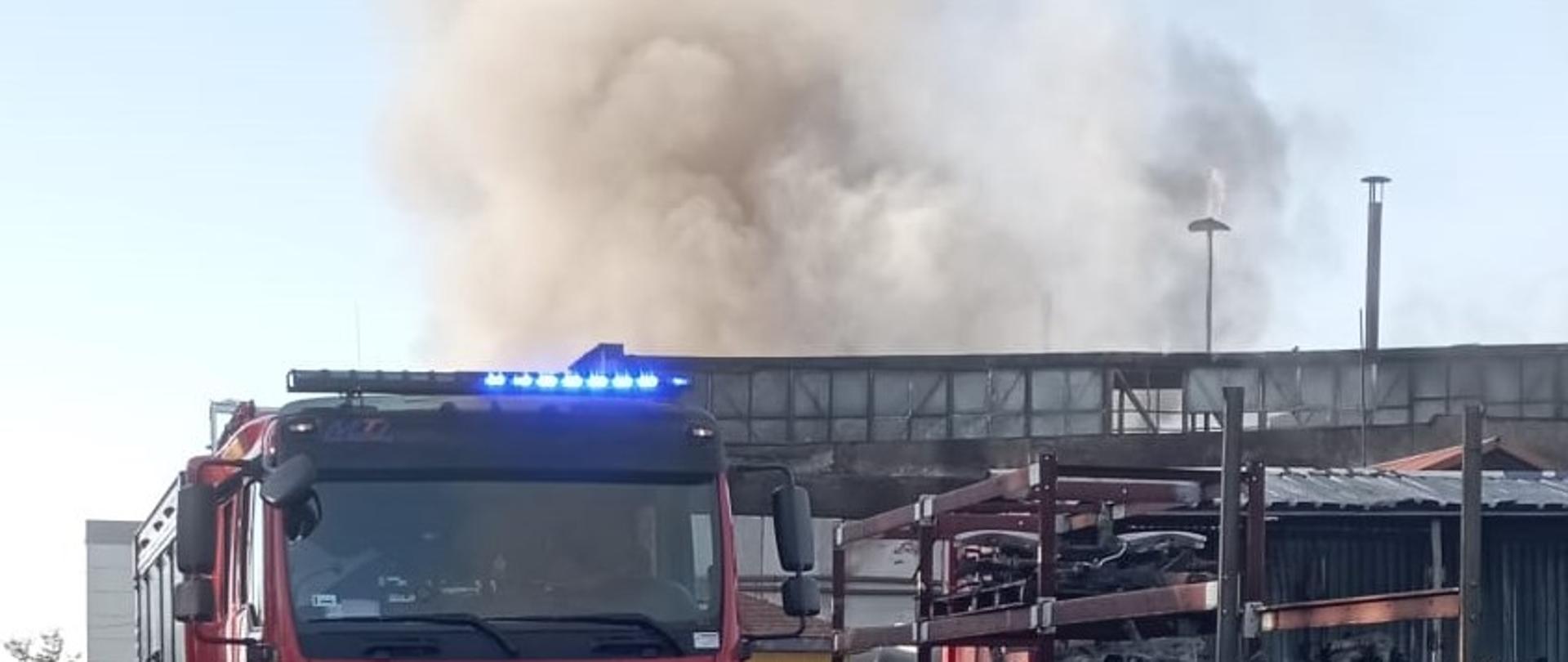 Na alarm ruszyło ponad 90 ratowników, którzy zastali rozwinięty pożar ogarniający ponad połowę murowanej hali o wymiarach około 30 m na 25 m. Przed przybyciem strażaków, pracownicy podjęli nieskuteczną próbę ugaszenia ognia używając agregatów proszkowych i gaśnic. Wszyscy opuścili obiekt i nikt nie wymagał pomocy medycznej. Ratownicy w pierwszej kolejności zabezpieczyli teren działań i rozpoczęli mozolną walkę z ogniem. W najintensywniejszym momencie pożaru podawano 5 prądów wody i wykorzystywano strumienie piany gaśniczej. Dużym problemem był brak możliwości wejścia do budynku ze względu na jego zniszczenia. Pożar gaszono przez otwory okienne i drzwiowe oraz podawano wodę z góry, z kosza drabiny mechanicznej przez uszkodzony dach. Po ugaszeniu ognia, wykorzystując sprzęt ciężki przystąpiono do rozbiórki fragmentów zniszczonego budynku. W miarę postępowania prac demontażowych na bieżąco przelewano gruzowisko dogaszając odkrywane zarzewia ognia. W trakcie prowadzenia akcji na bieżąco monitorowano strefę działań przy użyciu detektora wielogazowego i kamery termowizyjnej.