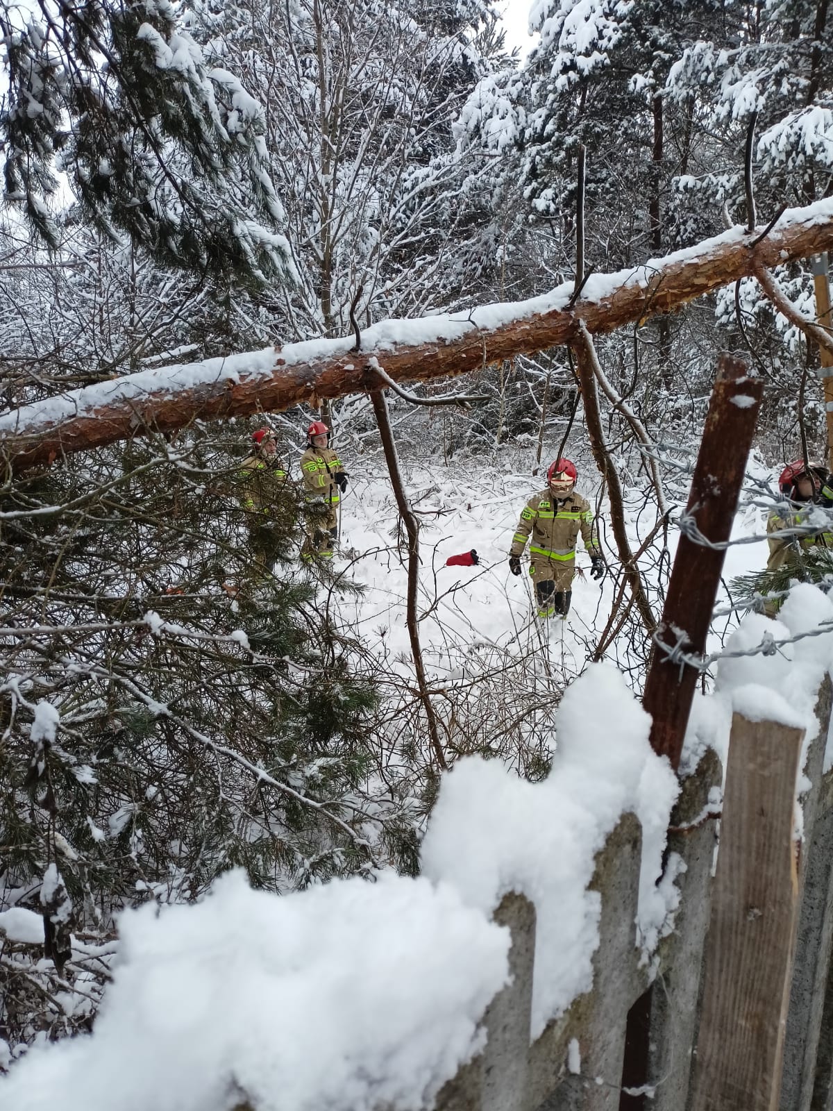 Od kilku dni codziennie towarzyszą nam intensywne opady śniegu i takie zgłoszenia docierają do Państwowej Straży Pożarnej kilka razy dziennie. Tegoroczna zima pokazała swoje groźne oblicze zanim zobaczyliśmy ją w kalendarzu. Okiść śnieżna na drzewach stanowi zagrożenie wszędzie tam gdzie musimy poruszać się wśród ośnieżonych drzew i niech nie zmyli nas ich bajkowy wygląd. Drogi, które prowadzą przez odcinki leśne stanowią niebezpieczne pułapki. Wzmóżmy naszą czujność: gałęzie obciążone grubą okrywą śnieżną i kruche w okresie zimowym mogą łamać się przy byle podmuchu wiatru. Jadąc szczególnie nocą, możemy najechać na taką przeszkodę w miejscu gdzie się jej nie spodziewamy. Zwróćmy też uwagę gdy przechodzimy pod ośnieżonymi drzewami i unikajmy takich miejsc, a nasze auta zostawiajmy w miejscach wolnych od zwisających gałęzi.