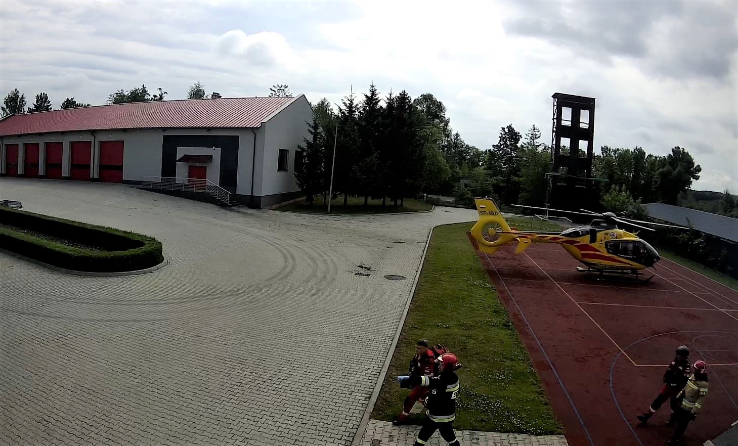 Ratownicy natychmiast ruszyli na pomoc kobiecie, która leżała na jezdni z rozciętą głową. Strażacy zabezpieczyli miejsce zdarzenia i wdrożyli adekwatne procedury z zakresu kwalifikowanej pierwszej pomocy w stosunku do poszkodowanej. Na miejsce zdarzenia zostało zadysponowane Lotnicze Pogotowie Ratunkowe, które wylądowało na placu wewnętrznym jednostki ratowniczo-gaśniczej. Personel LPR-u przebadał kobietę, a po badaniu poszkodowana została zabrana do najbliższego szpitala.