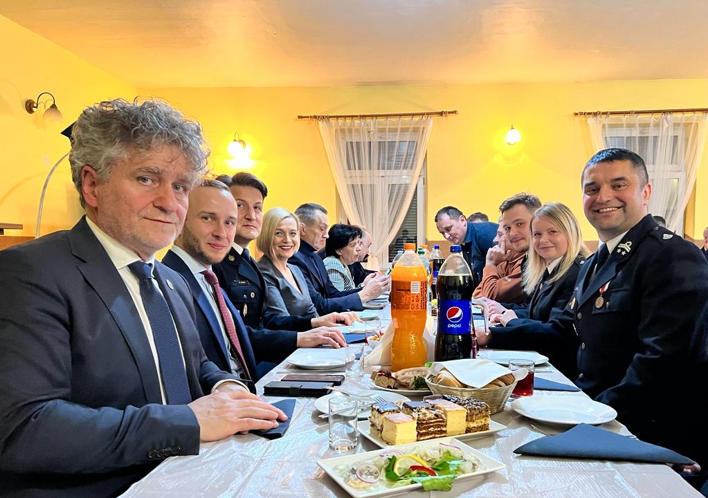 W świątecznej atmosferze ze strażakami - ochotnikami spotkali się między innymi: Senator RP Krzysztof Słoń, Wicemarszałek Województwa Świętokrzyskiego Pani Renata Janik, Starosta Powiatu Kieleckiego Pan Mirosław Gębski. Wśród zaproszonych gości w tej uroczystość wziął udział Komendant Miejski Państwowej Straży Pożarnej w Kielcach Pan bryg. Mariusz Góra. Była to znakomita okazja do podsumowania roku, złożenia sobie nawzajem życzeń, podziękowań, podzielenie się płatkiem, a także wymiany doświadczeń i rozmów przedświątecznych. Uroczystość była tym bardziej radosna, że tradycja bezpośrednich spotkań została zaburzona przez trwającą blisko 2 lata pandemię.