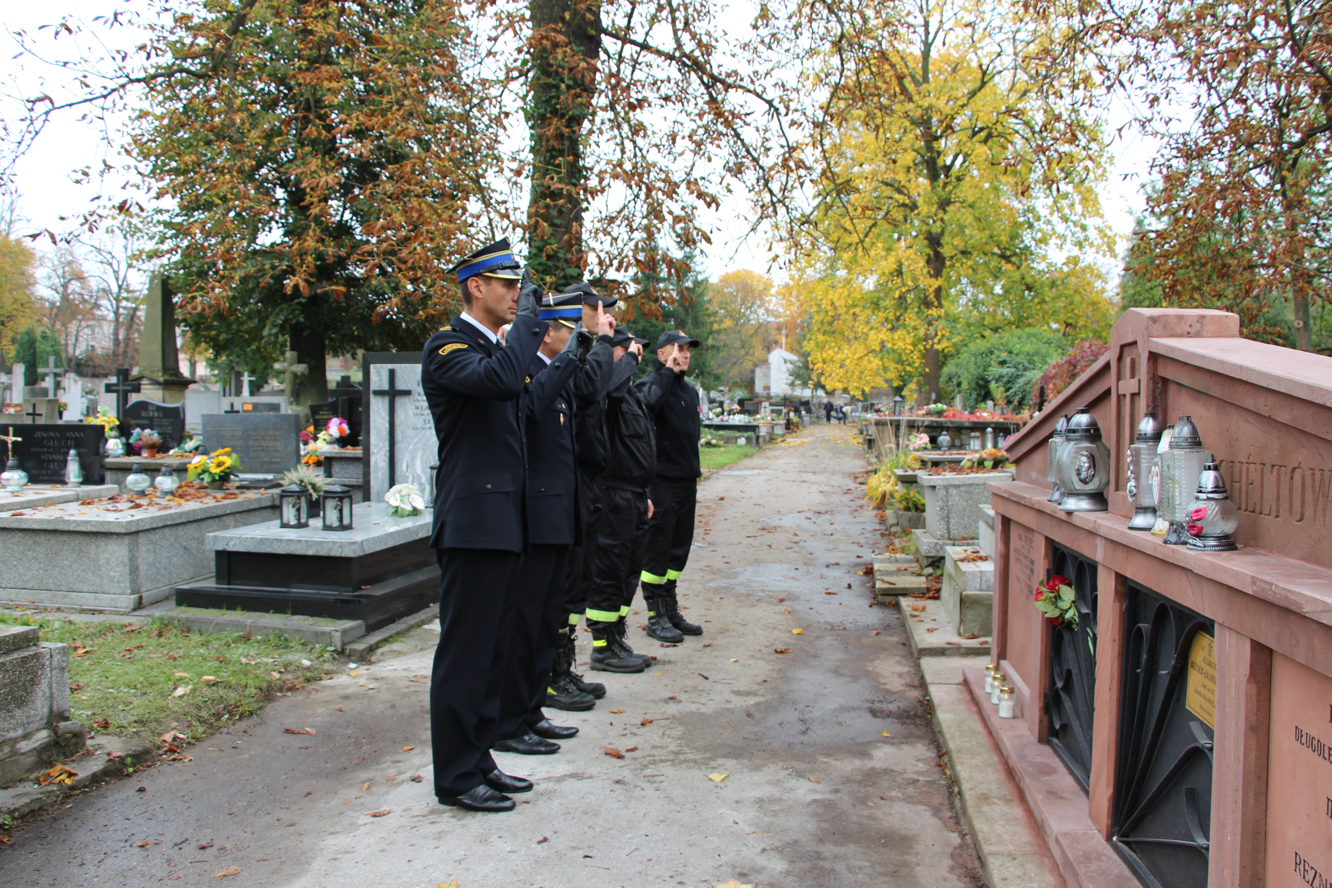 Komendant Miejski Państwowej Straży Pożarnej w Kielcach bryg. Mariusz Góra wraz ze swym zastępcą bryg. Michałem Jankowskim odwiedzili groby osób zasłużonych dla ochrony przeciwpożarowej w naszym mieście. Oddali honor oraz zapalili znicze na miejscach doczesnego spoczynku między innymi śp. Karola Reichtela - założyciela i pierwszego komendanta Ochotniczej Straży Pożarnej w Kielcach czy śp. Karola Wolskiego, który piastował funkcję naczelnika V oddziału kieleckiej ochotniczej straży ogniowej. Nawiedzanie i porządkowanie grobów w tym czasie jest tradycją na stałe wpisaną w kalendarz kieleckich strażaków. To dowód na to, że pamięć zasłużonych dla ochrony przeciwpożarowej jest wciąż żywa. Kolejne pokolenia funkcjonariuszy zapoznają się z historią kieleckiej straży pożarnej odwiedzając miejsca pochówku tych, którzy budowali naszą formację.