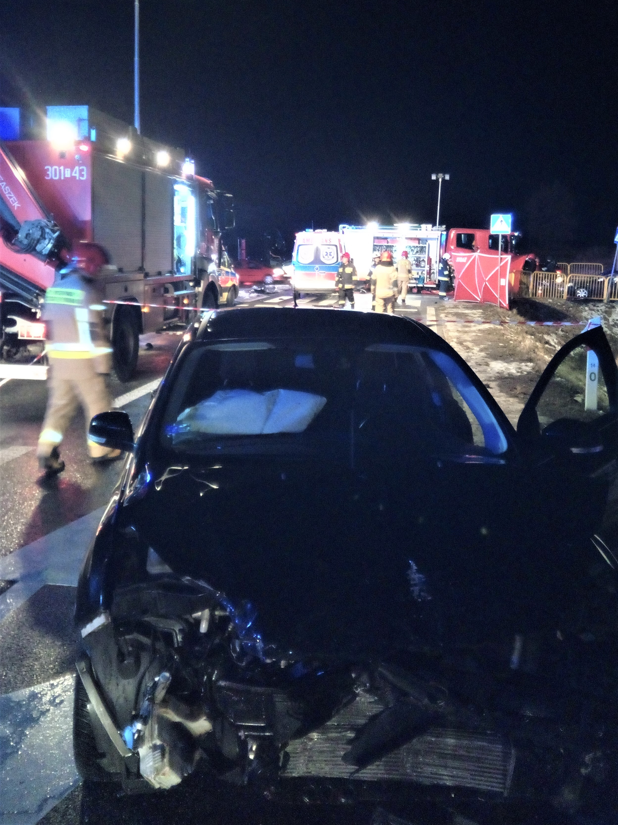 Ratownicy, którzy pierwsi przybyli na miejsce zdarzenia zobaczyli zderzenie dwóch samochodów osobowych: Opla Astra, którym jechały 4 młode kobiety i Forda Focus gdzie jedynym użytkownikiem był jego kierowca. Wszystkie osoby biorące udział w zdarzeniu były poza pojazdami, a dwóm kobietom osoby postronne udzielały pierwszej pomocy. Pozostałe trzy osoby stwierdziły, że nie wymagają pomocy medycznej. Auta stały częściowo na pasach drogi i poboczu. W wyniku zderzenia zniszczone zostały dwa znaki drogowe. Działania przybyłych zastępów straży pożarnej polegały na zabezpieczeniu miejsca zdarzeniu i odłączeniu zasilania z akumulatorów w obu pojazdach. Równocześnie strażacy wdrożyli procedury ratownicze z zakresu kwalifikowanej pierwszej pomocy w stosunku do obu kobiet. Po przybyciu na miejsce Zespół Ratownictwa Medycznego przejął opiekę nad poszkodowanymi. Niestety lekarz stwierdził zgon jednej z kobiet, druga zaś została zabrana do szpitala. W trakcie dalszych działań kierowca Forda i kolejna z kobiet poczuli się gorzej, a po przebadaniu oni również zostali zabrani do szpitala. Po zakończeniu czynności wyjaśniających okoliczności zdarzenia obwodnica została uprzątnięta i udrożniona.
