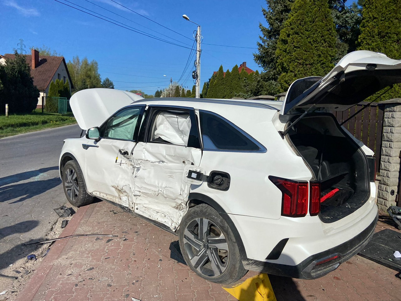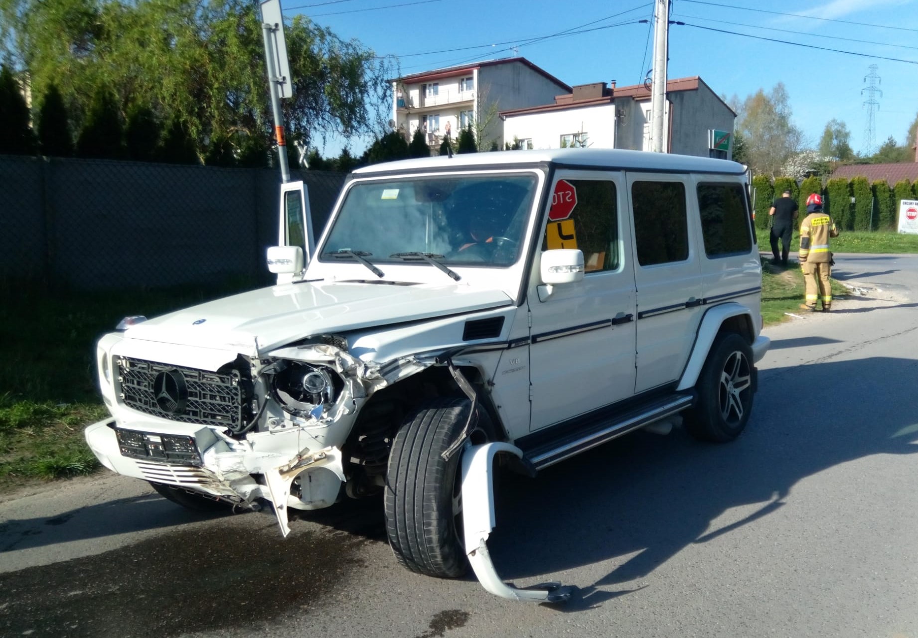 Samochody marki Kia Sorento i terenowy Mercedes, którymi łącznie podróżowało 5 osób w tym 3 dzieci zderzyły się na ulicy Prostej. Wszyscy samodzielnie wysiedli z aut. Do zdarzenia przybyły 3 zastępy straży pożarnej. Ratownicy zabezpieczyli i oznakowali teren oraz jednocześnie wdrożyli procedury kwalifikowanej pierwszej pomocy w stosunku do poszkodowanych. Po przybyciu Zespołu Ratownictwa Medycznego osoby zostały przebadane i zabrane do szpitala. Strażacy, w tym czasie odłączyli zasilanie z akumulatorów w pojazdach, dezaktywowali obwód wysokiego napięcia w hybrydzie i usunęli wycieki, które powstały na jezdni. Podczas działań ulica Prosta była zamknięta dla ruchu.