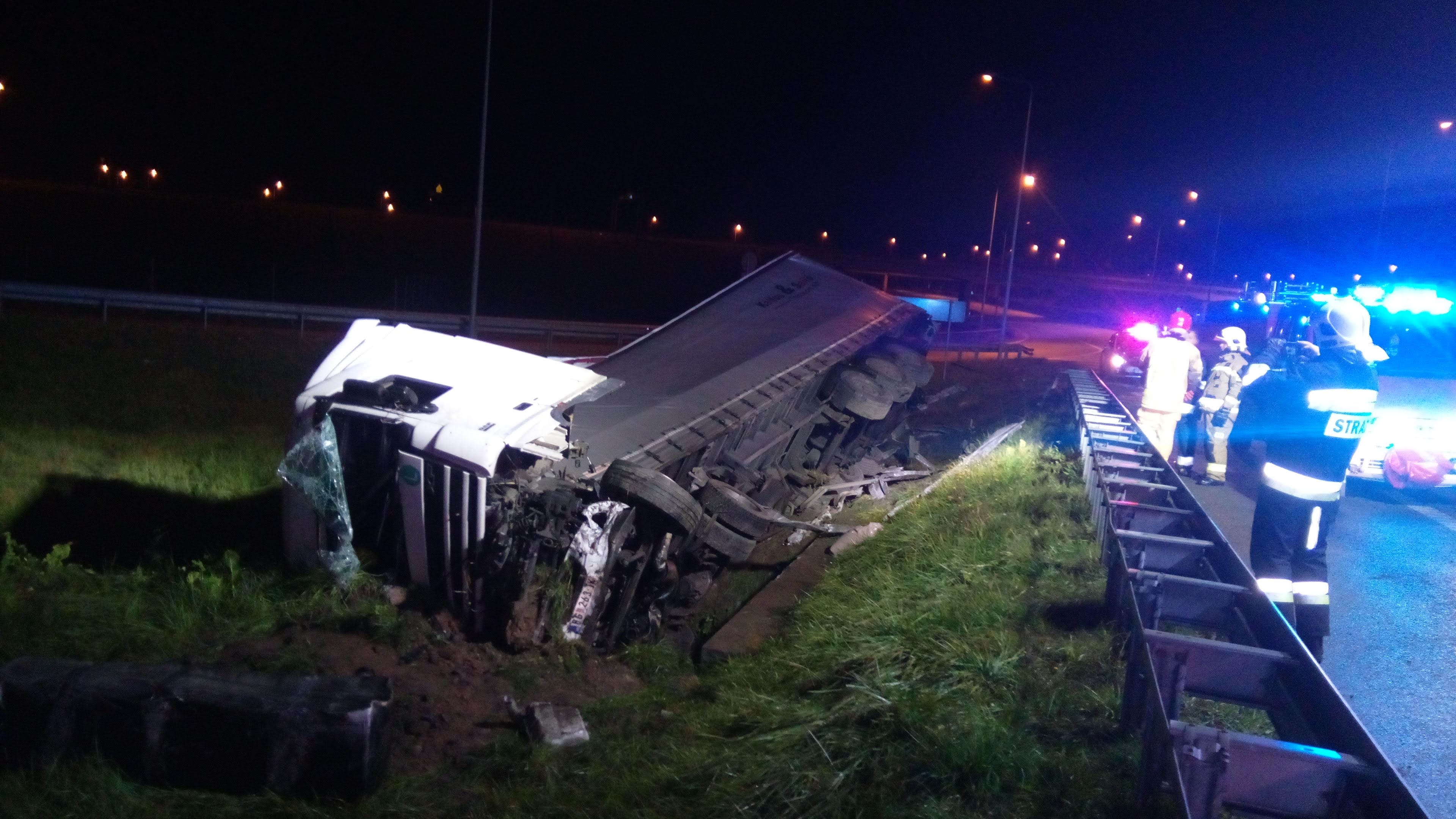 Po przybyciu na miejsce zdarzenia zastępów straży pożarnej stwierdzono, że samochód ciężarowy DAF z naczepą wypadł z drogi oraz uszkodził barierę energochłonną na długości ok 10 m. Pojazd znajdował się poza jednią, leżąc na prawym boku, nad rowem melioracyjnym. Pojazdem podróżował tylko kierowca (obywatel Serbii), który wydostał się z pojazdu o własnych siłach. W chwili przybycia straży pożarnej był pod opieka Pogotowia Ratunkowego i po udzieleniu pomocy medycznej został przetransportowany do szpitala.